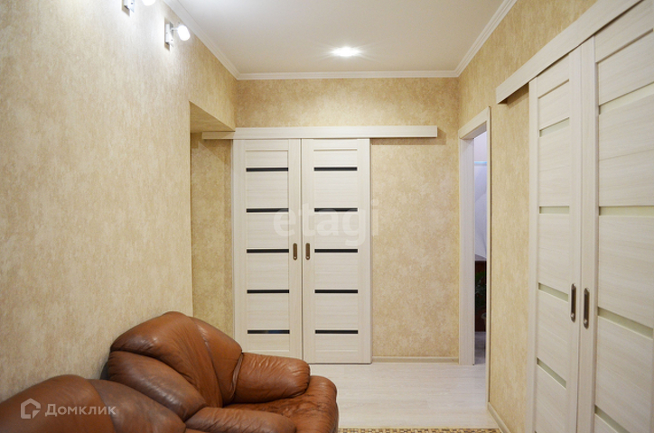 Ремонт по дизайн-проекту, большая кухня 22 кв.м, гардероб 8 кв.м, зал объединён с лоджией 18 кв.м, детская 19 кв.м, спальня 12 кв.м.