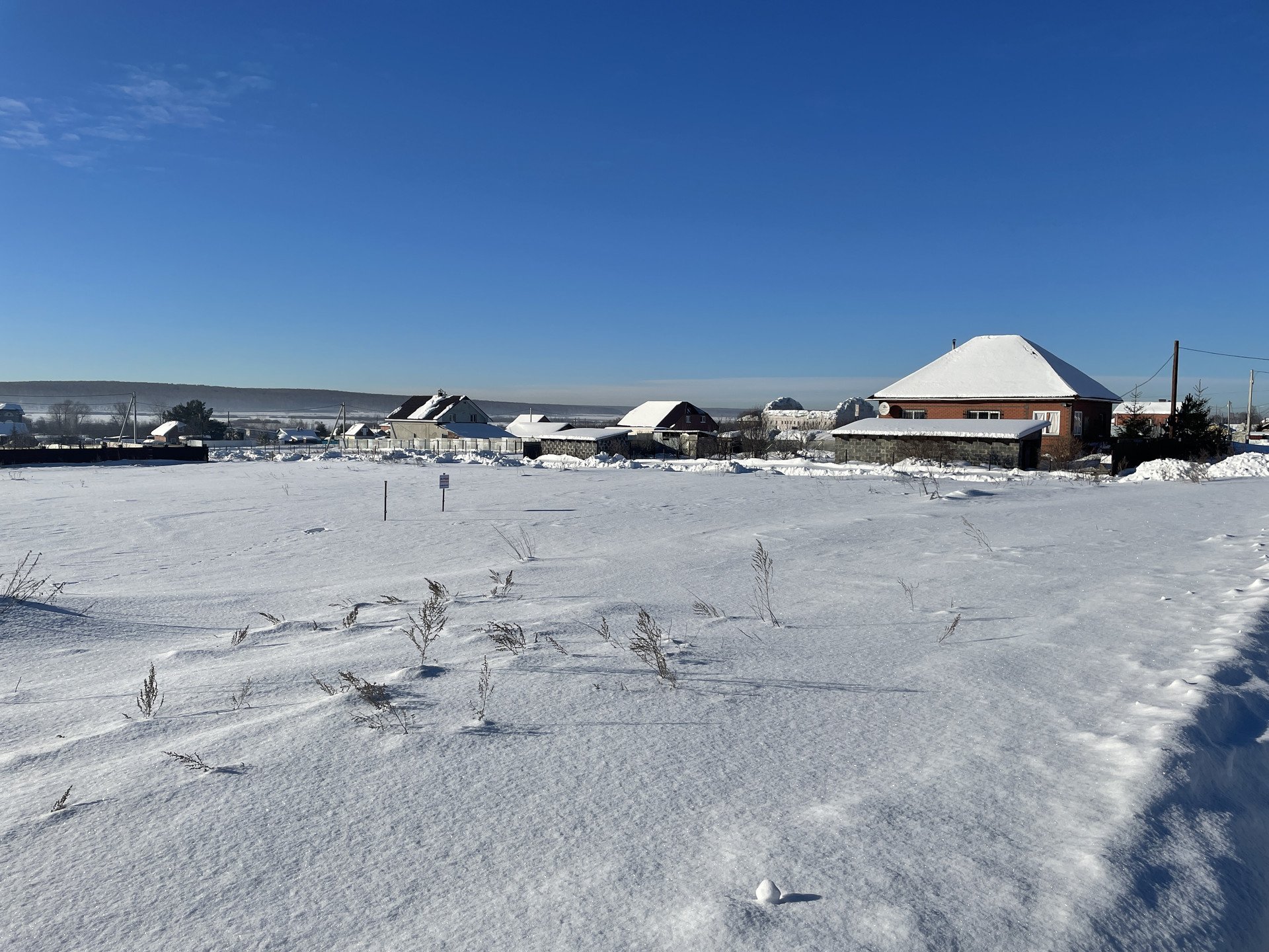 Участок ровный, находится в центре деревни на главной улице Советская с видом на лес. Неподалеку лес и речка.