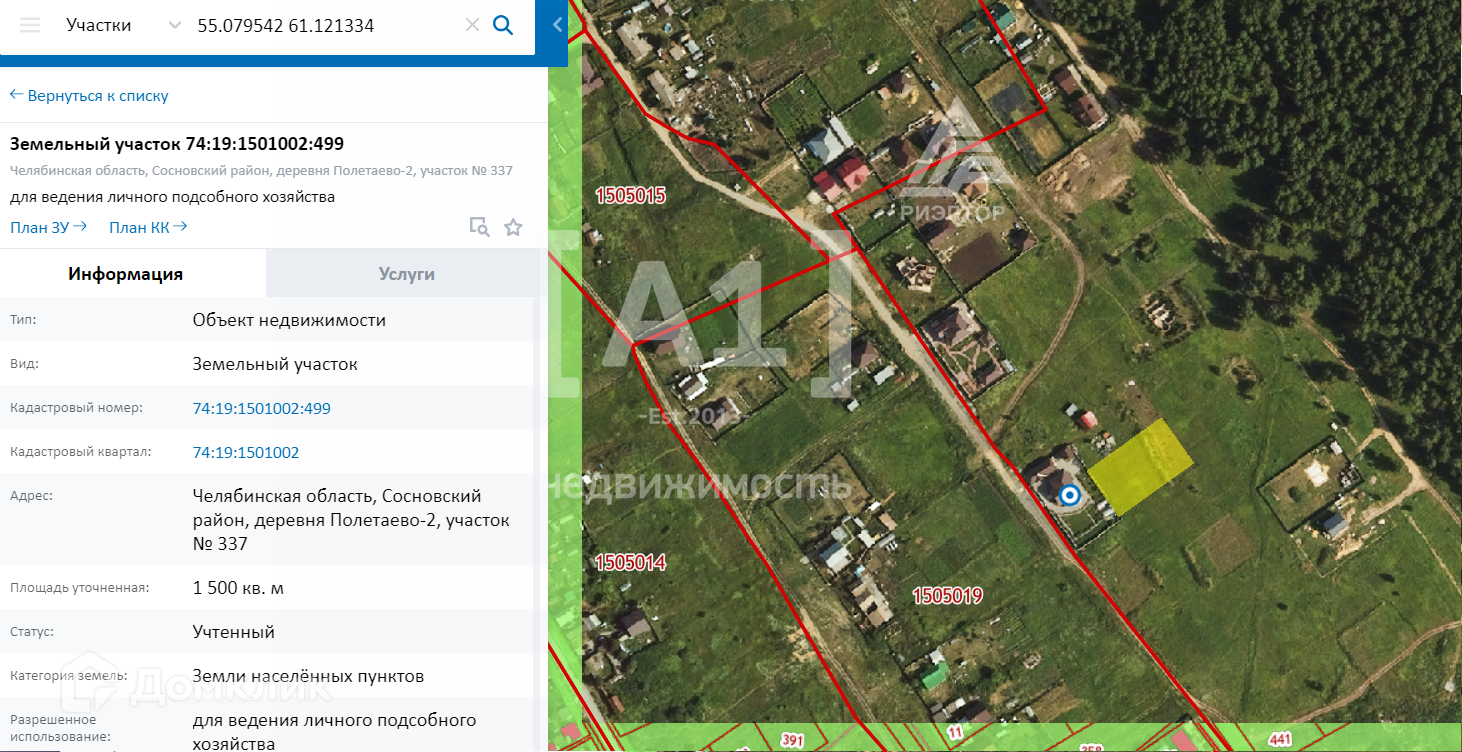 Кадастровый номер 74:19:1501002:499