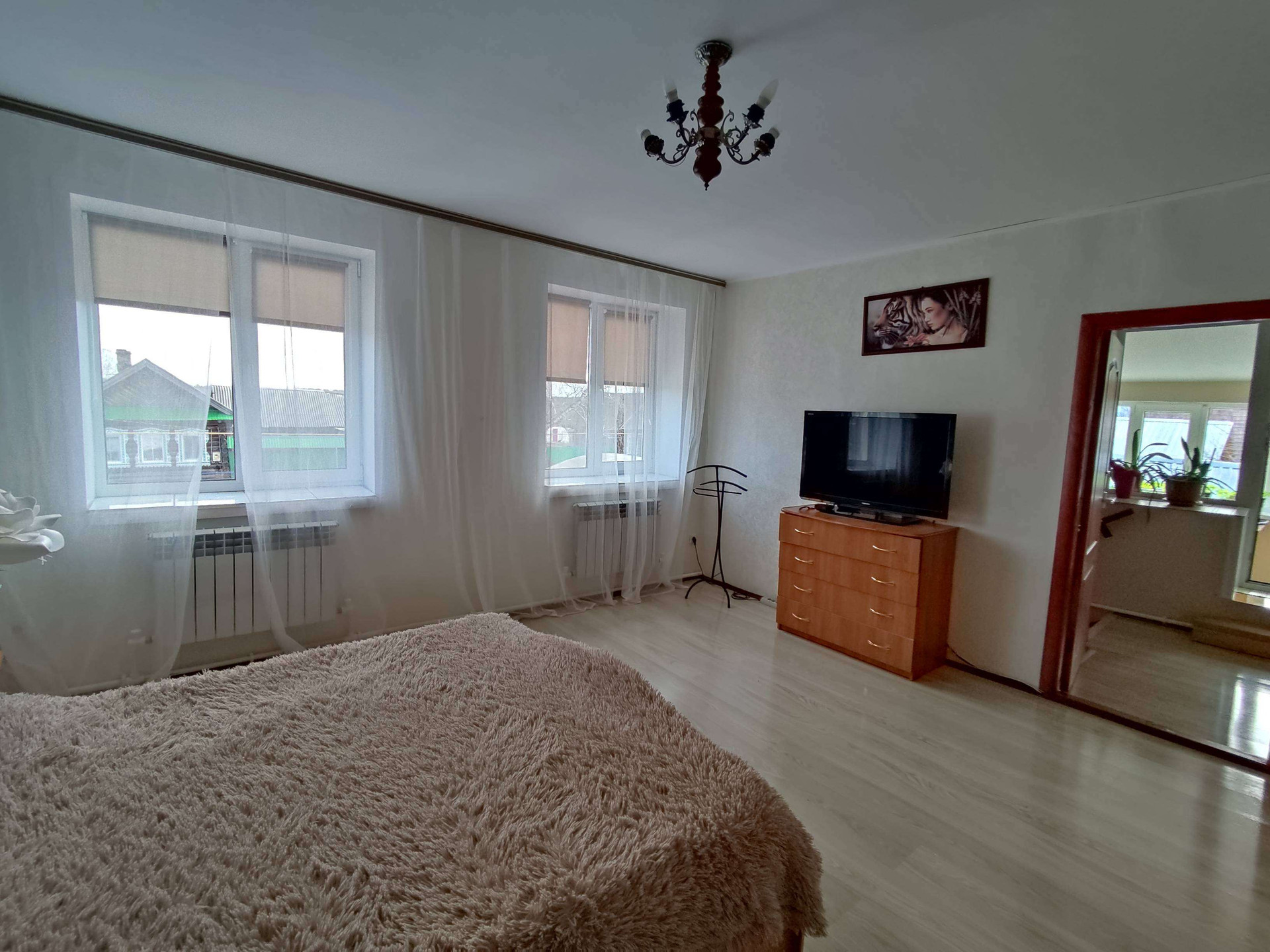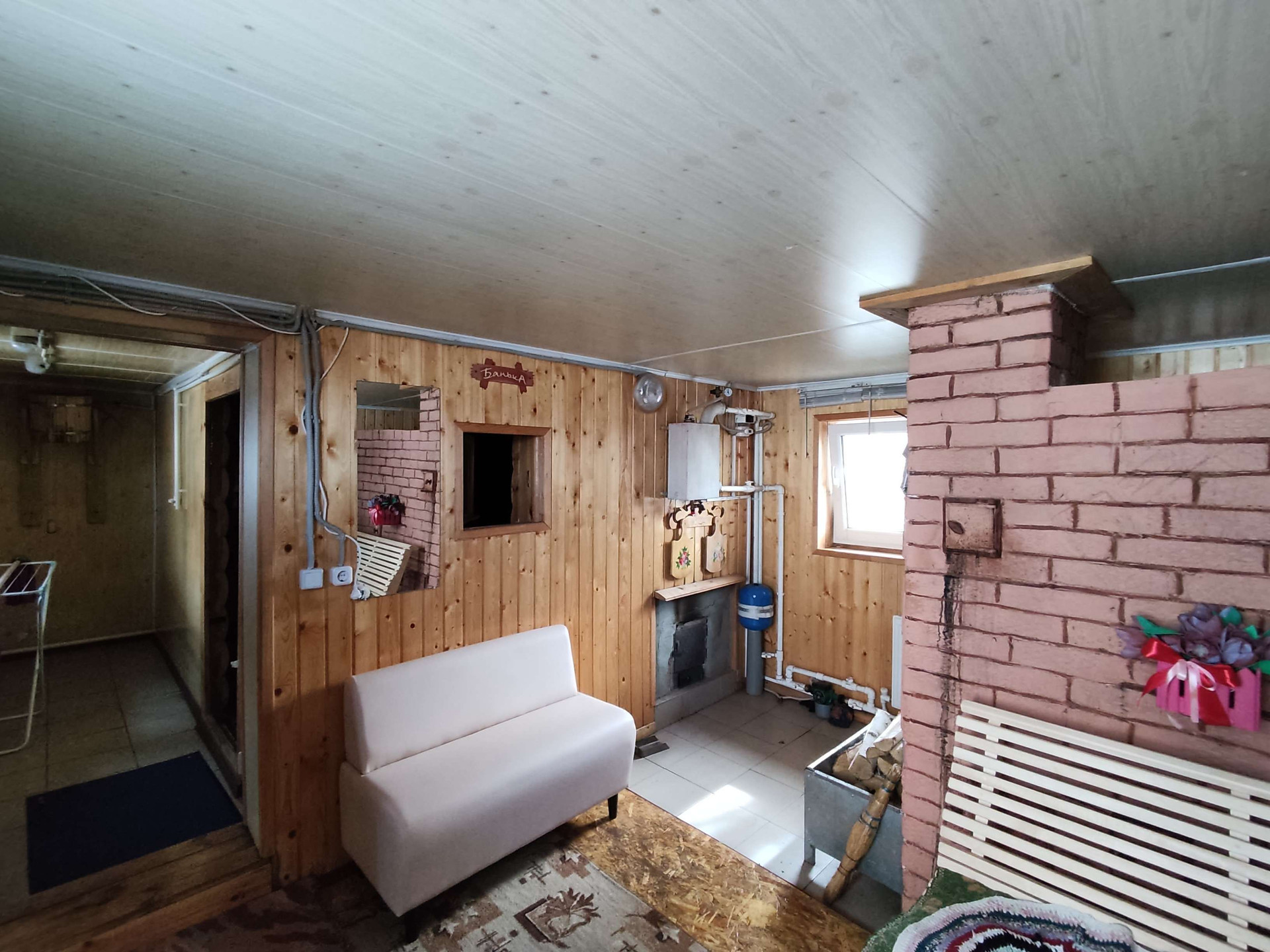 В доме имеется газ, свет, холодная и горячая вода, окна все новые пластиковые, имеется утепленный балкон с видом в сад и во двор, имеется свой гараж на два автотранспорта, баня с русской печью и с отоплением.