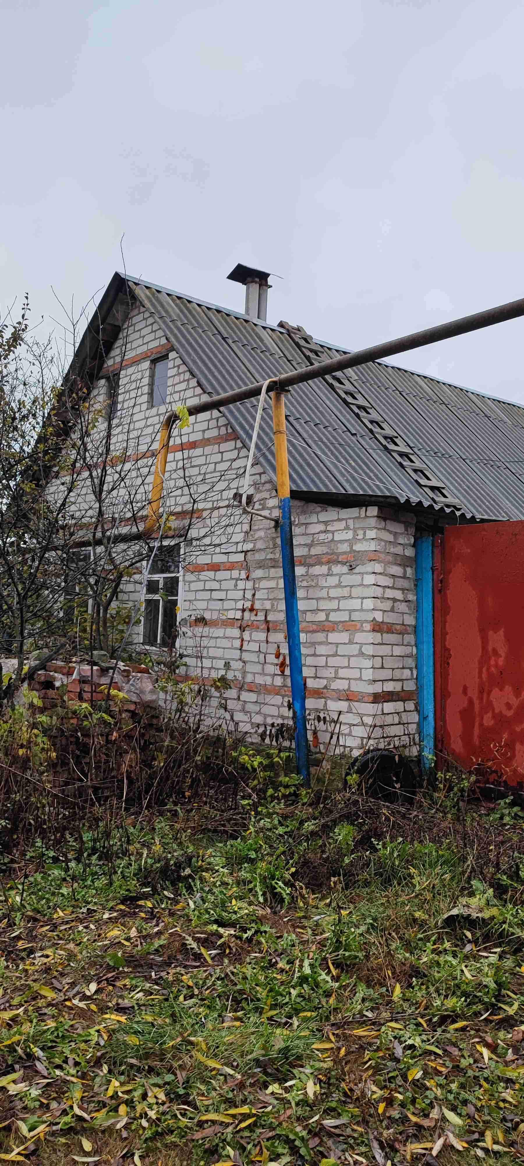 2) кирпичную времянку с газом, об'единенную с хозблоком,