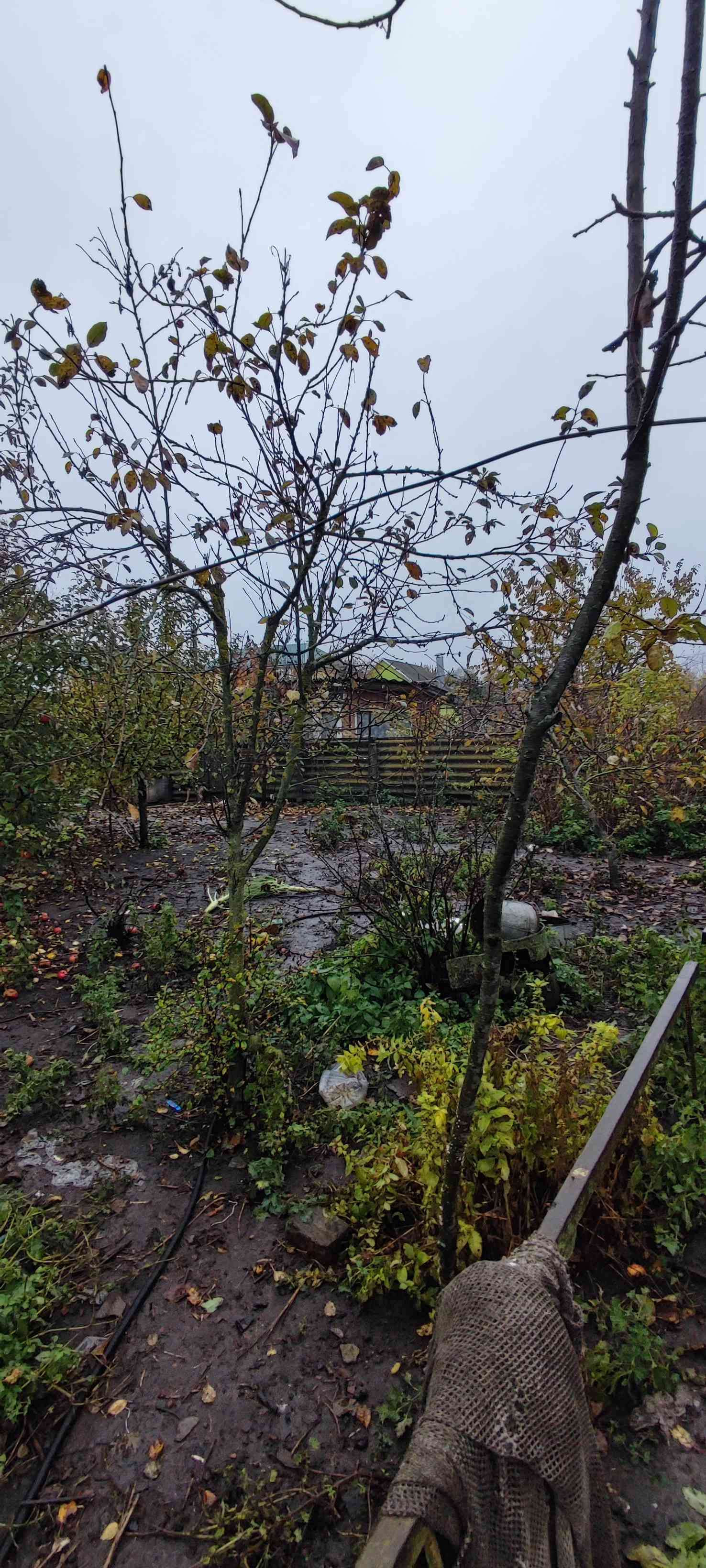 На участке прекрасный плодоносящий сад.