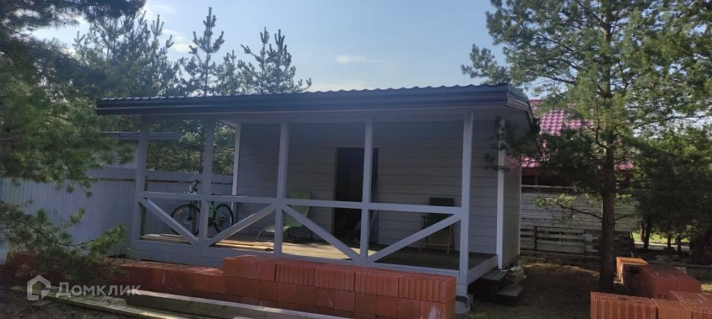 В доме имеется кухня-гостиная, две комнаты, гардеробная, санузел, открытая веранда: