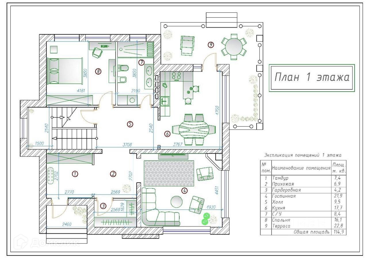 На первом этаже спальня для гостей, просторная кухня с выходом на готовую террасу, гостиная и санузел гостевой! Высота потолков 3 метра.