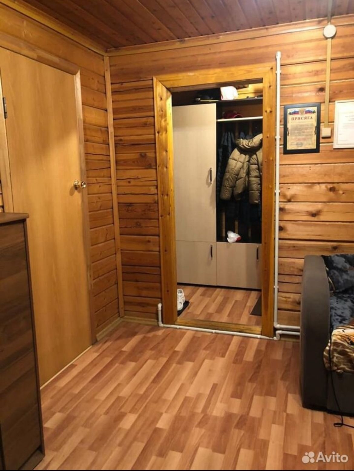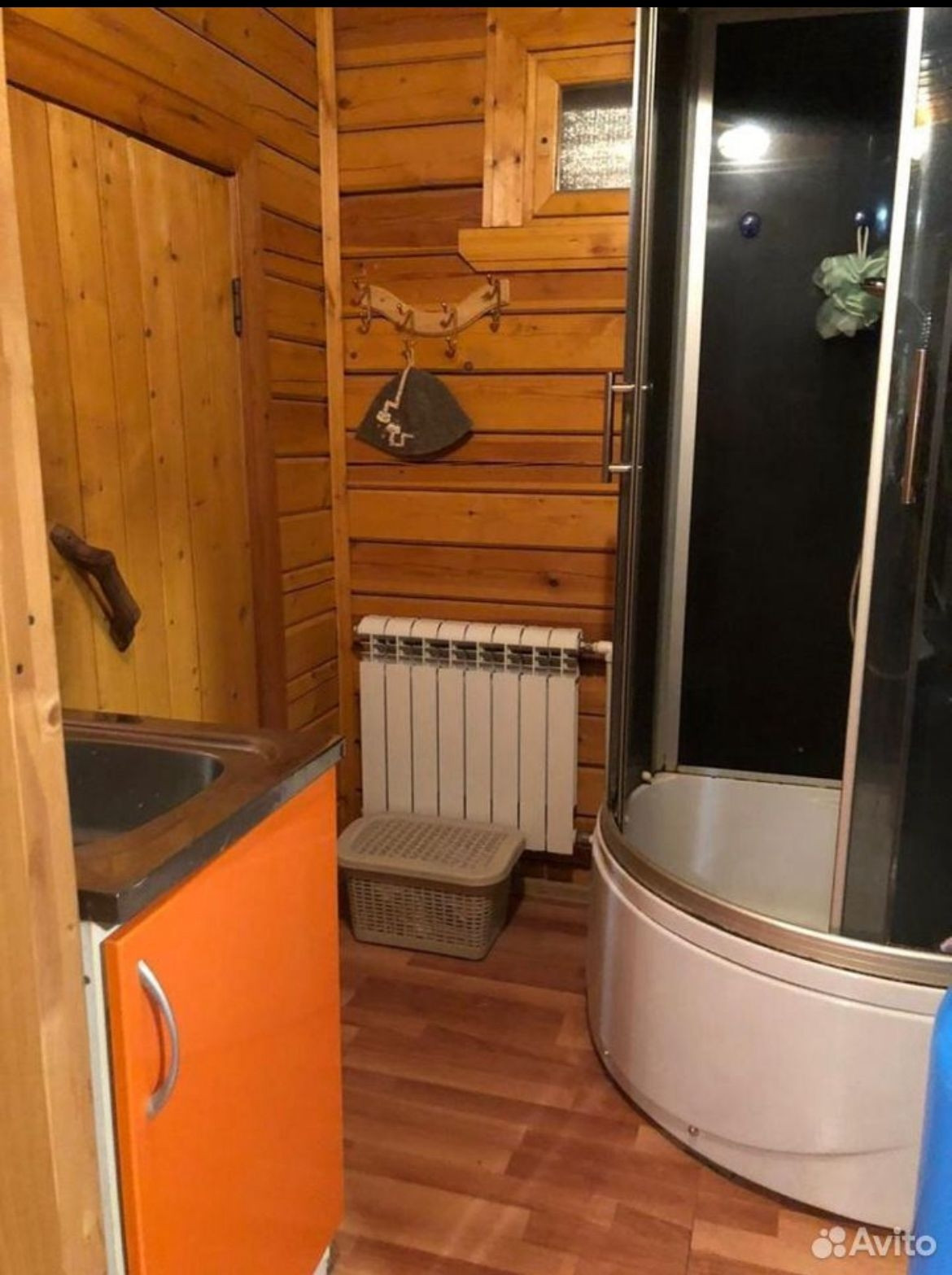 Жилой дом с пропиской в котеджном посёлке. Дом из бруса, внешне обшит сайдингом. В доме :1 этаж - крыльцо, коридор, с/у раздельный, душевая кабина, парная, кухня-гостиная.