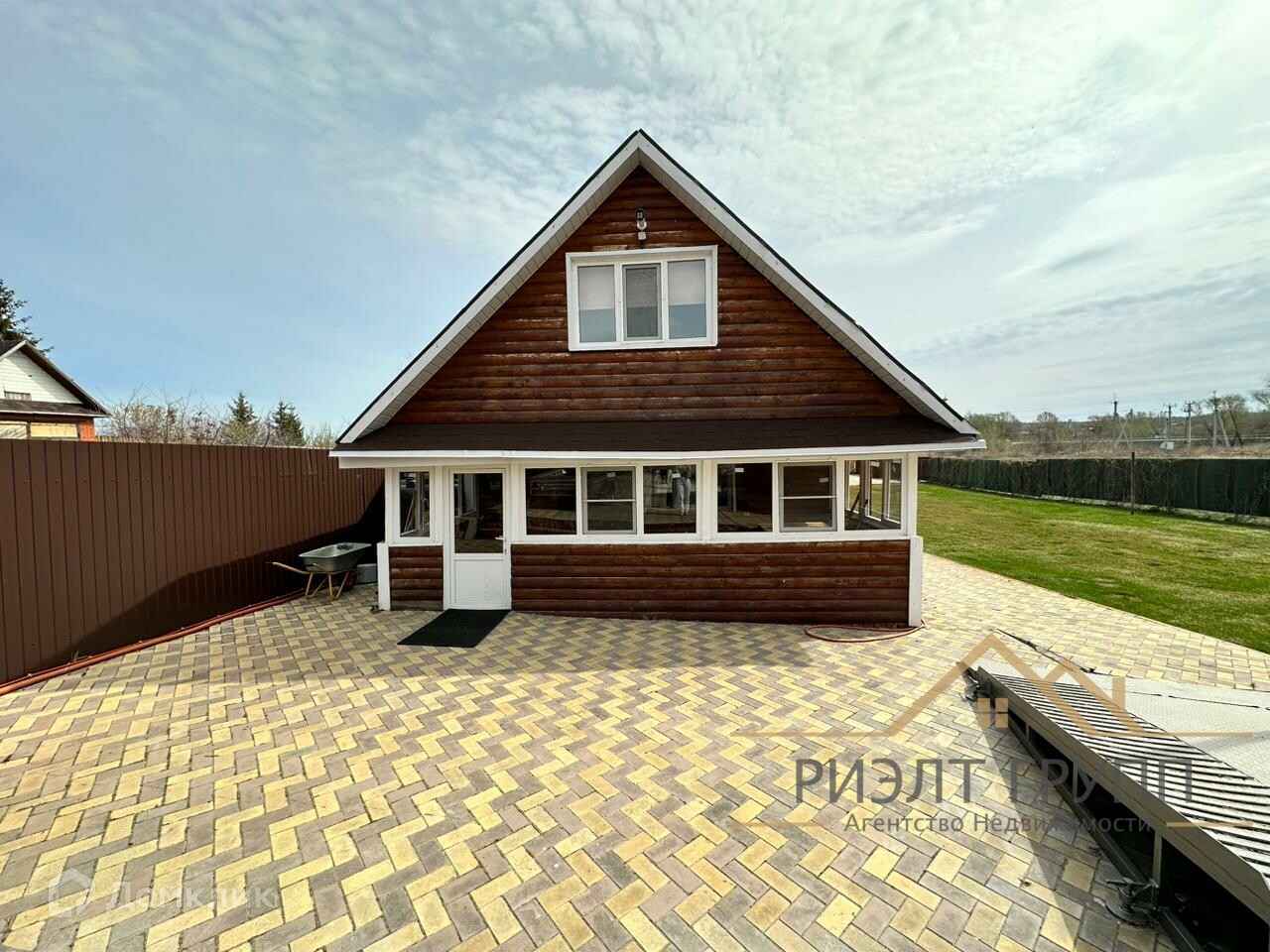 -внутри рулонный газон, дорожки выложены плиткой, спорт площадка 10 соток газон,
