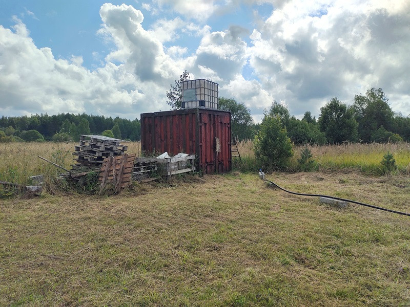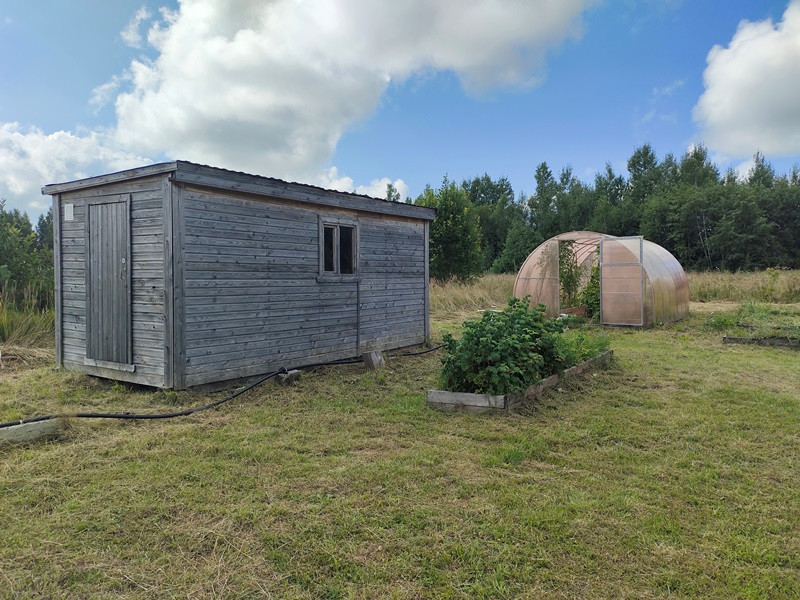 Участок под домом ухожен и благоустроен. Выровнен, с трёх сторон оканавлен. По периметру дома сделан дренаж. Растёт молодой сад: яблони, груши, сливы, малина. Есть теплица, хозблок и контейнер для хранения инвентаря, куб для воды на полив сада и огорода.