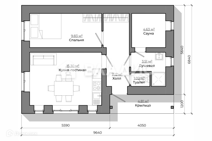 Общая площадь 64 м2