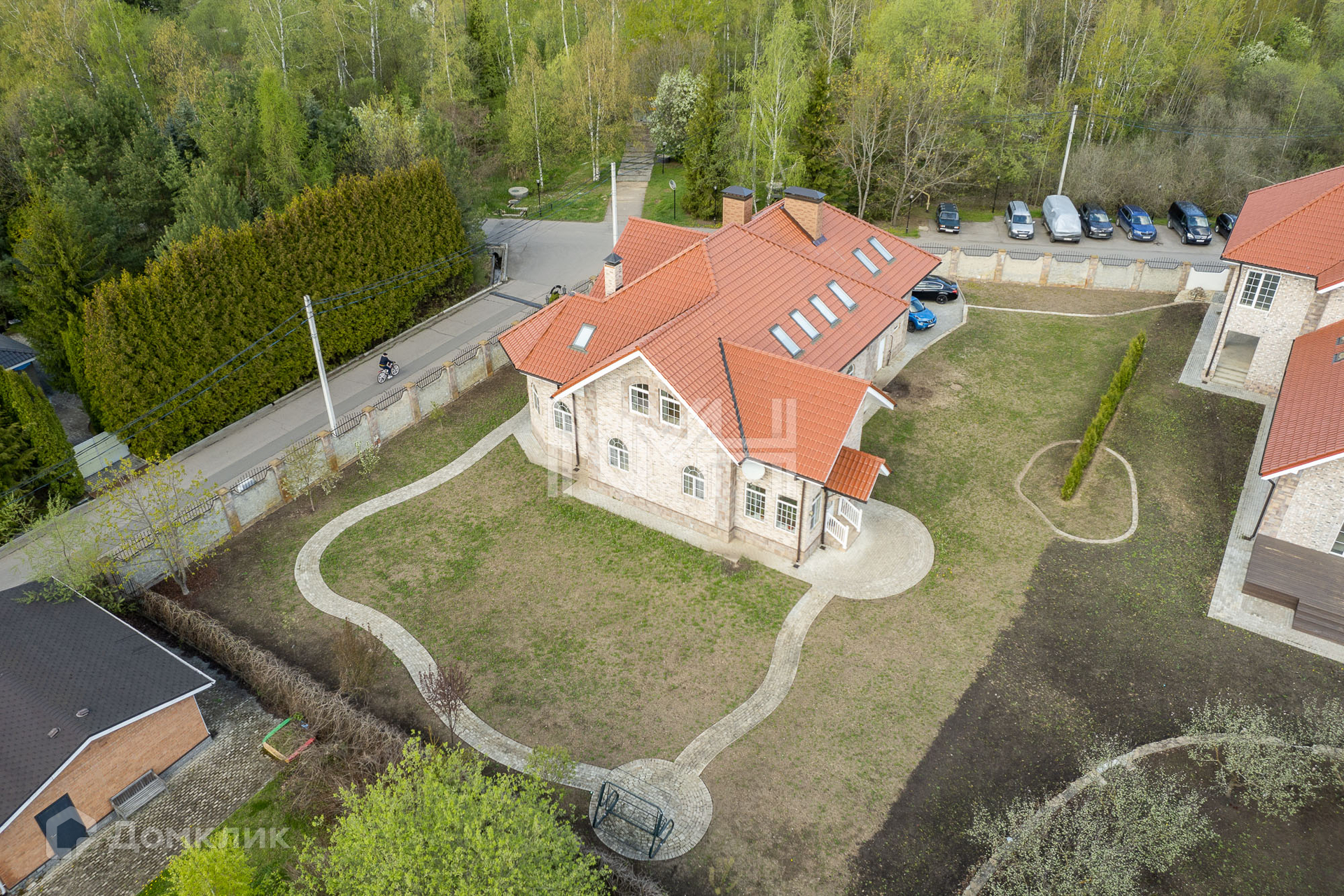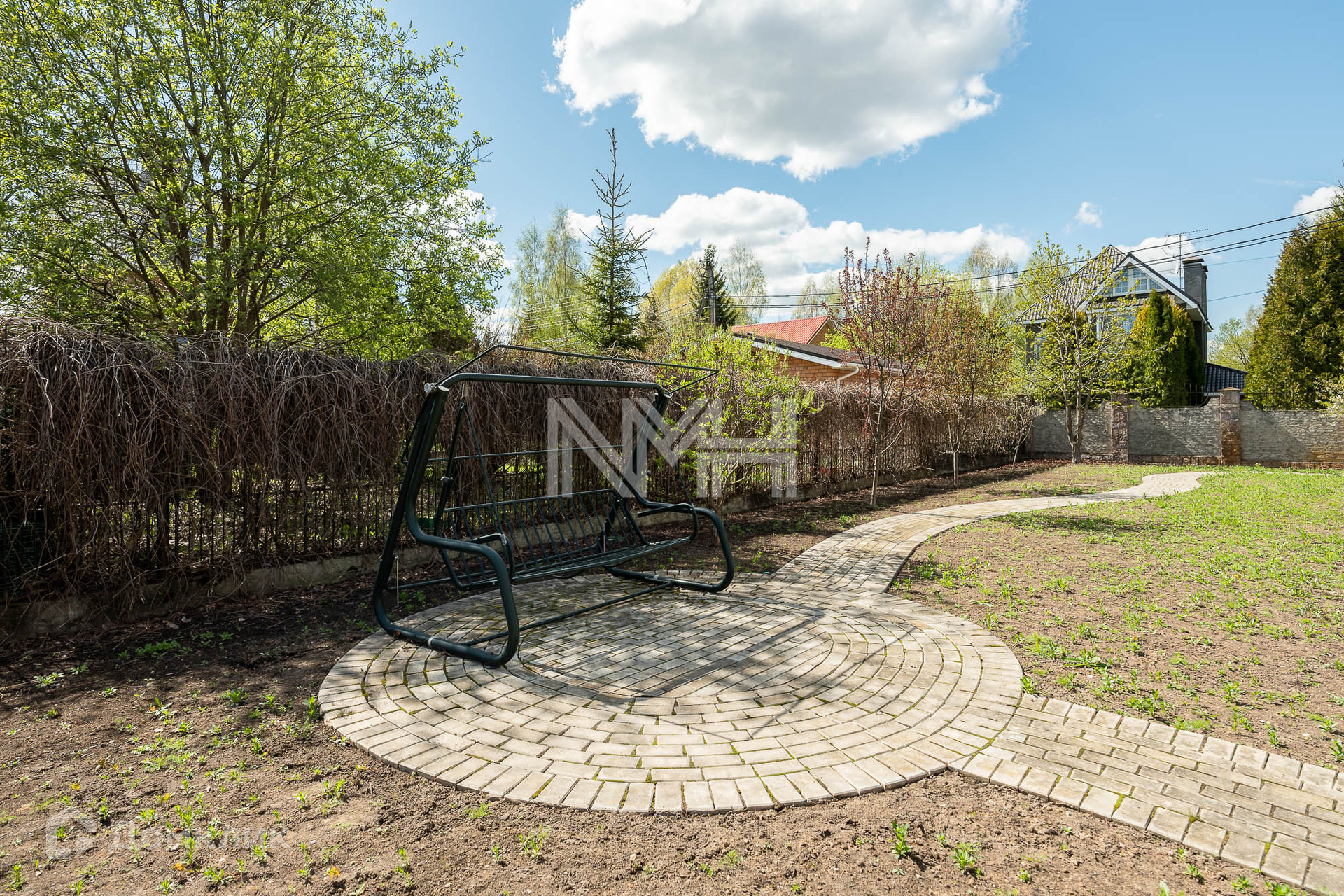Участок 15 соток с ландшафтным дизайном. По периметру высажены хвойники. Остекленная закрытая беседка, спортивная и детская площадка – в 2 минутах от участка, газон. Дорожки и парковка вымощены брусчаткой. Участок огорожен забором на бетонном основании. Соседи все построены и живут.