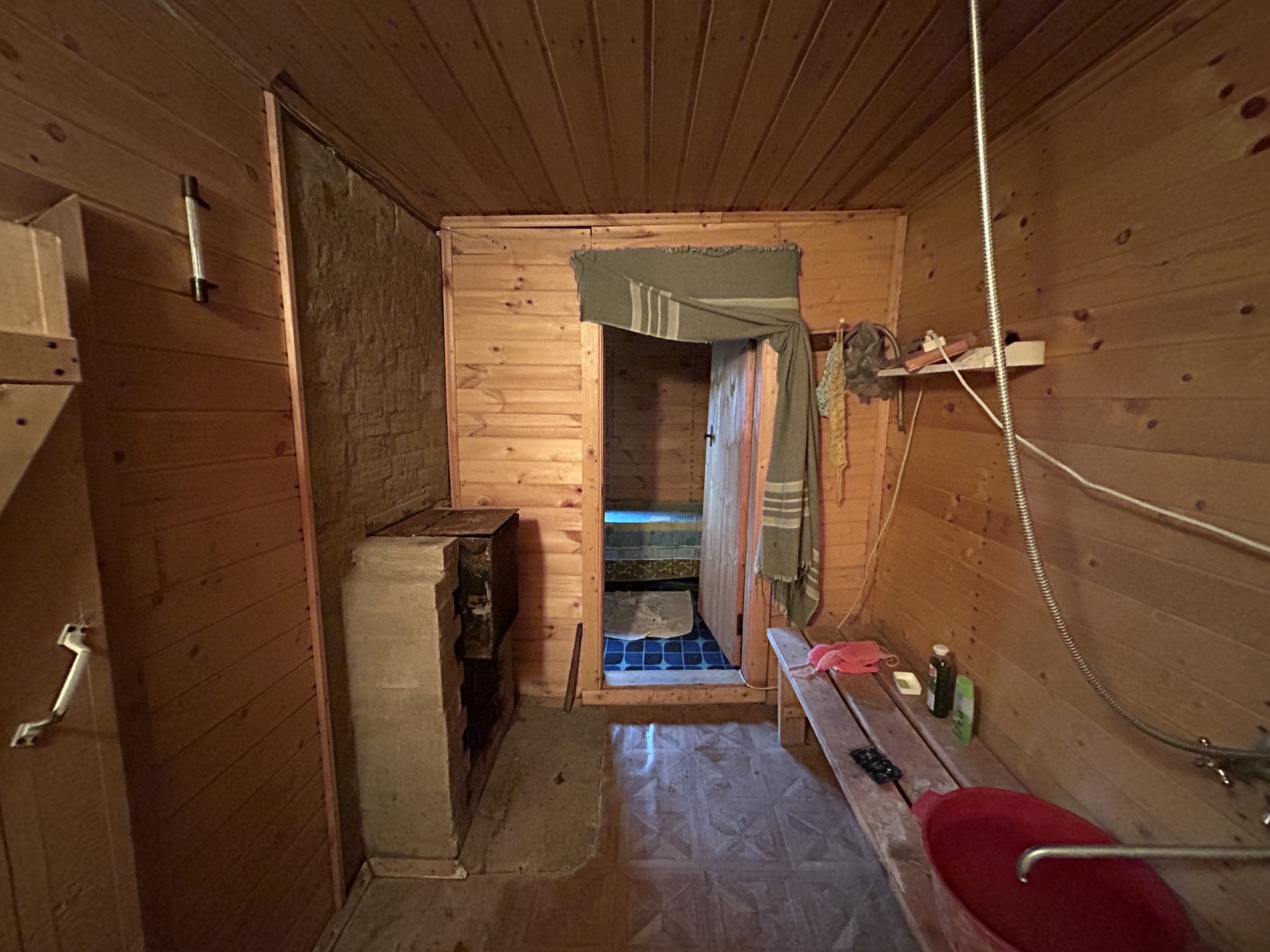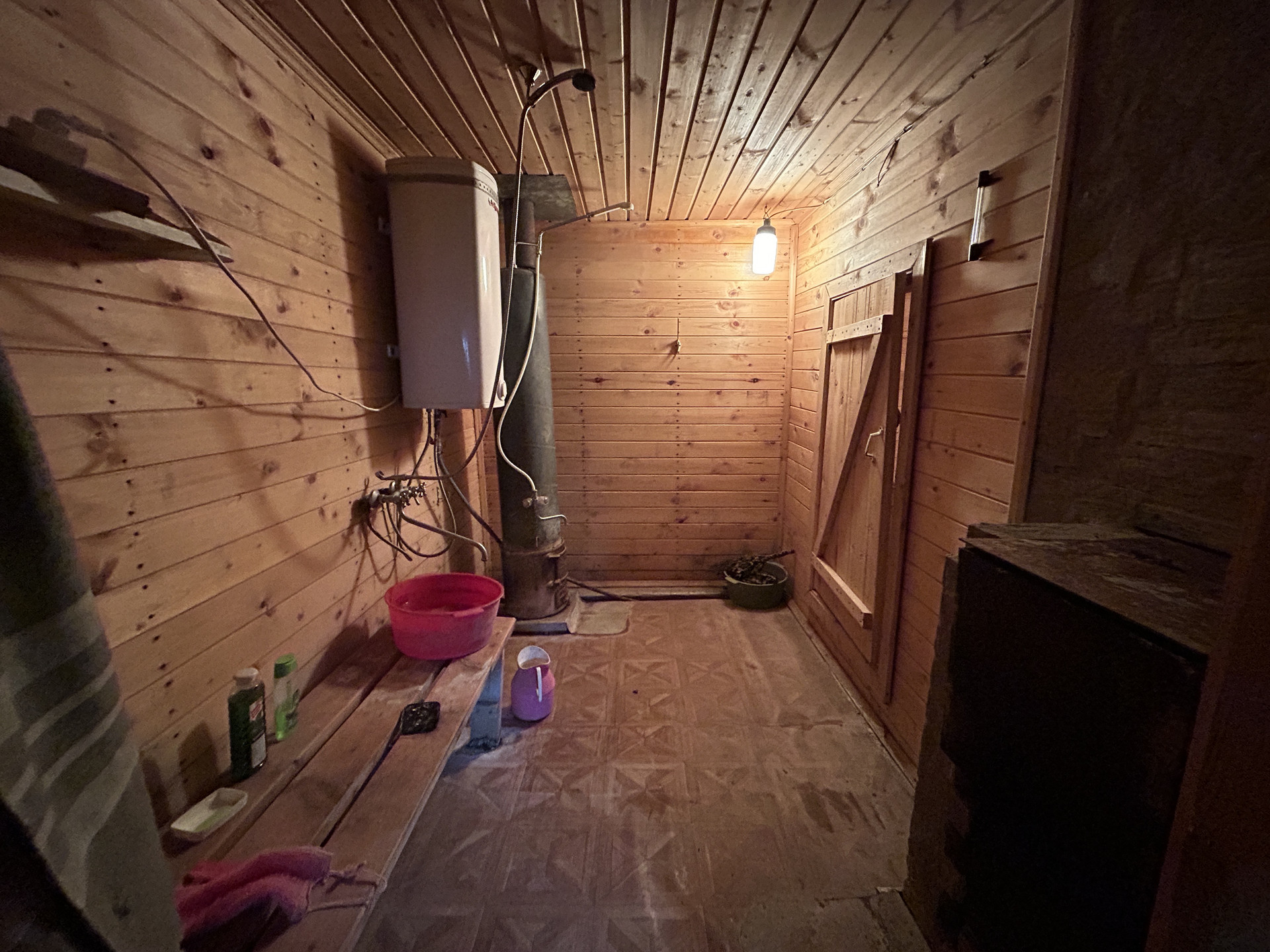 БАНЯ: Бревенчатая баня, на бетонной ленточном фундаменте, площадью 30 кв.м. Состоит из террасы, холла, раздевалки, помывочного отделения и парилки. Баня в рабочем, хорошем состоянии. Электричество 15 кВт -220 Вольт. Вода холодная проведена от водопровода. Вода в бане, как и на участке, только летом. Печь в бане с баком для воды, можно использовать зимой.