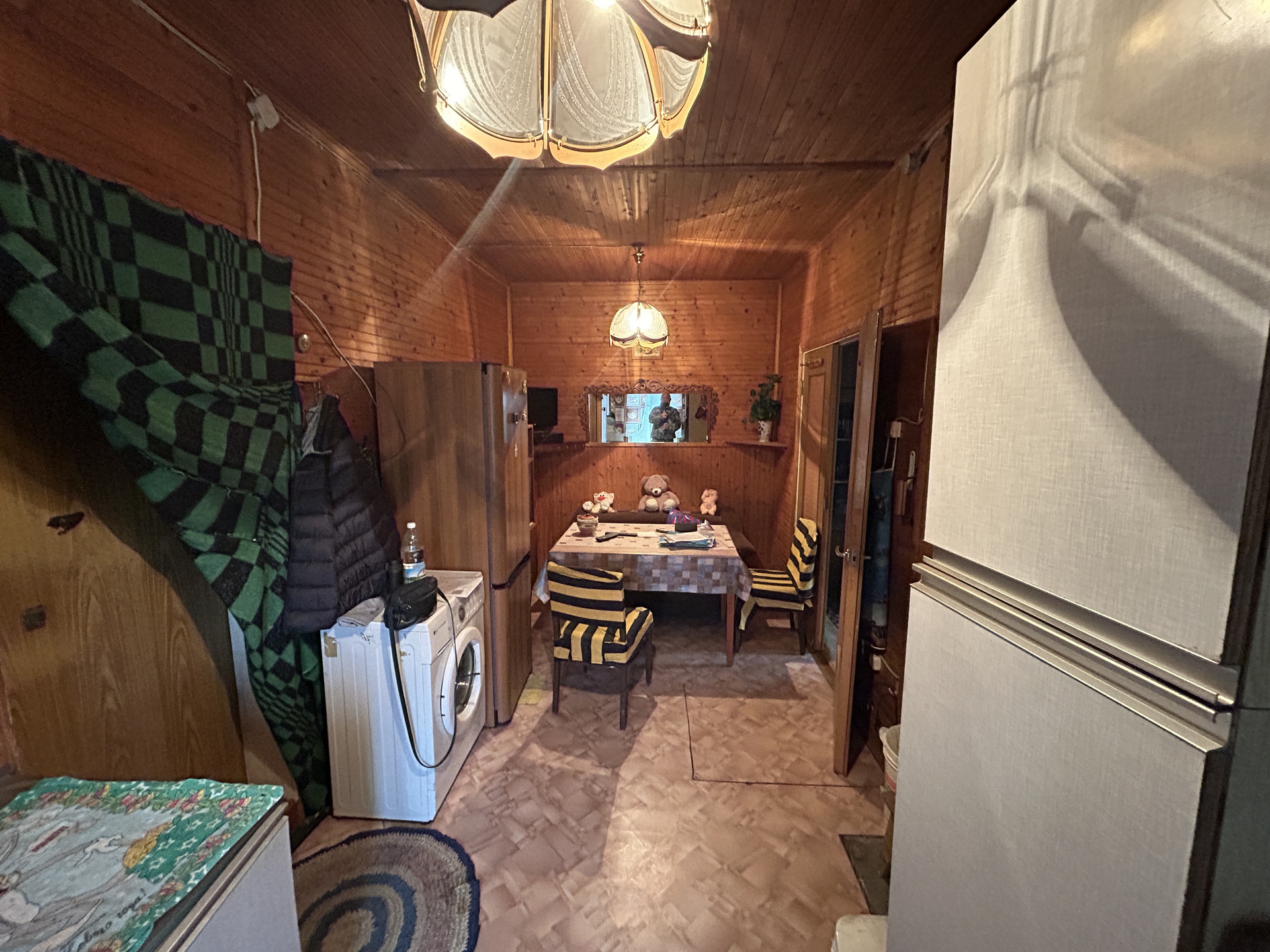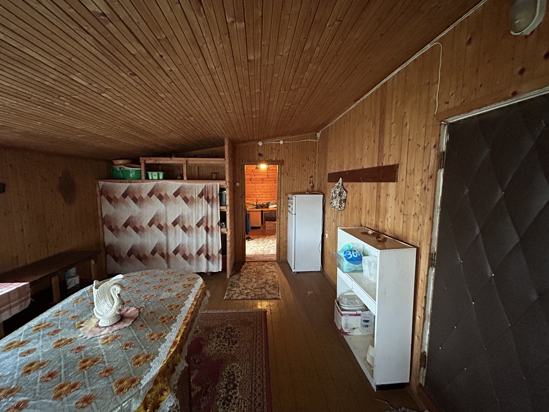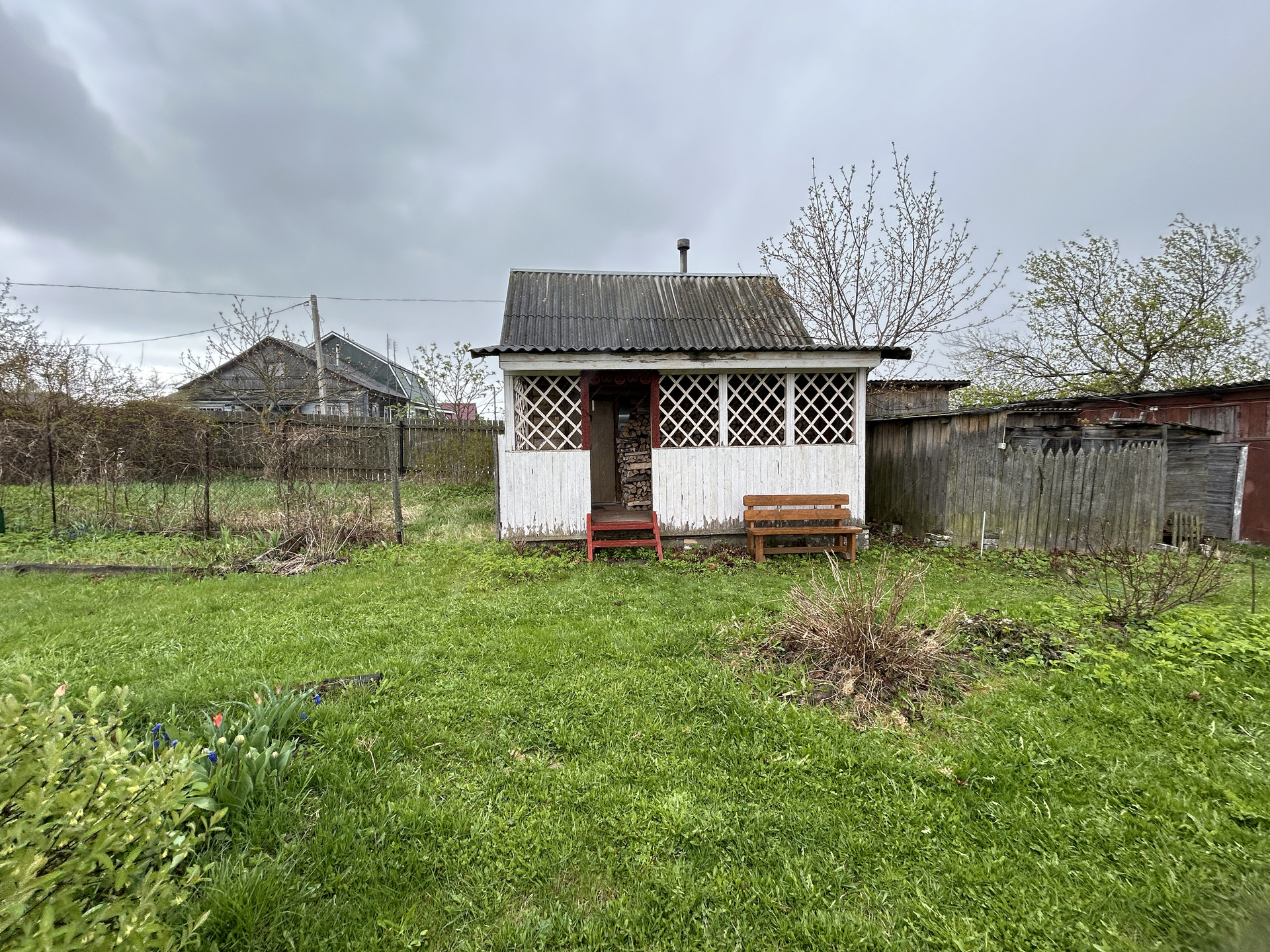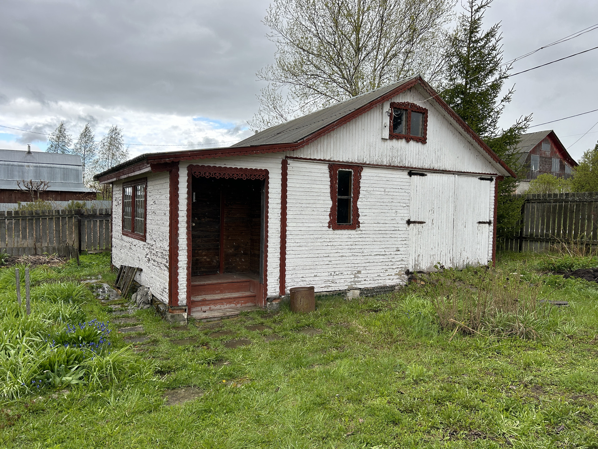 ХОЗЯЙСТВЕННАЯ ПОСТРОЙКА-ДОМИК, ГАРАЖ: Хоз. постройка деревянная, на бетонном ленточном фундаменте, площадью 28.2 кв.м. с пристроенным гаражом 35 кв.м. Состоит из террасы, комнаты, кладовой и мастерской. Второй этаж- высокий чердак. Все в отличном состоянии. Электричество проведено.