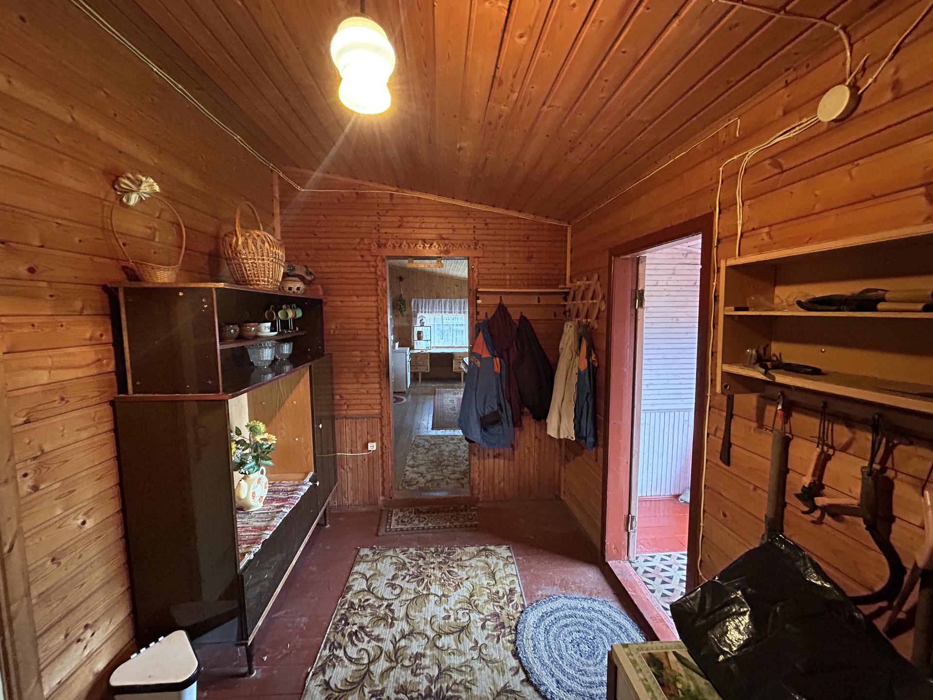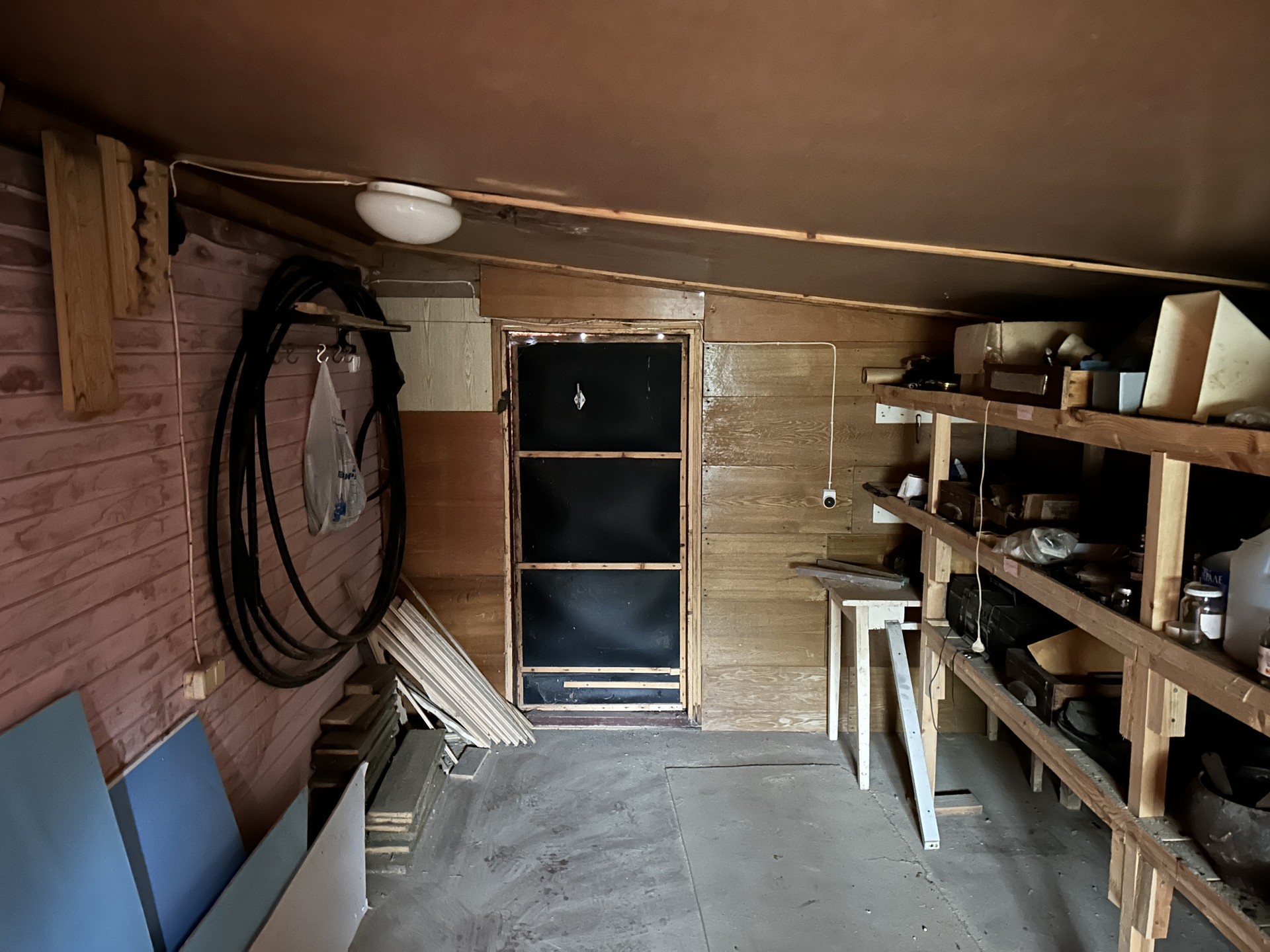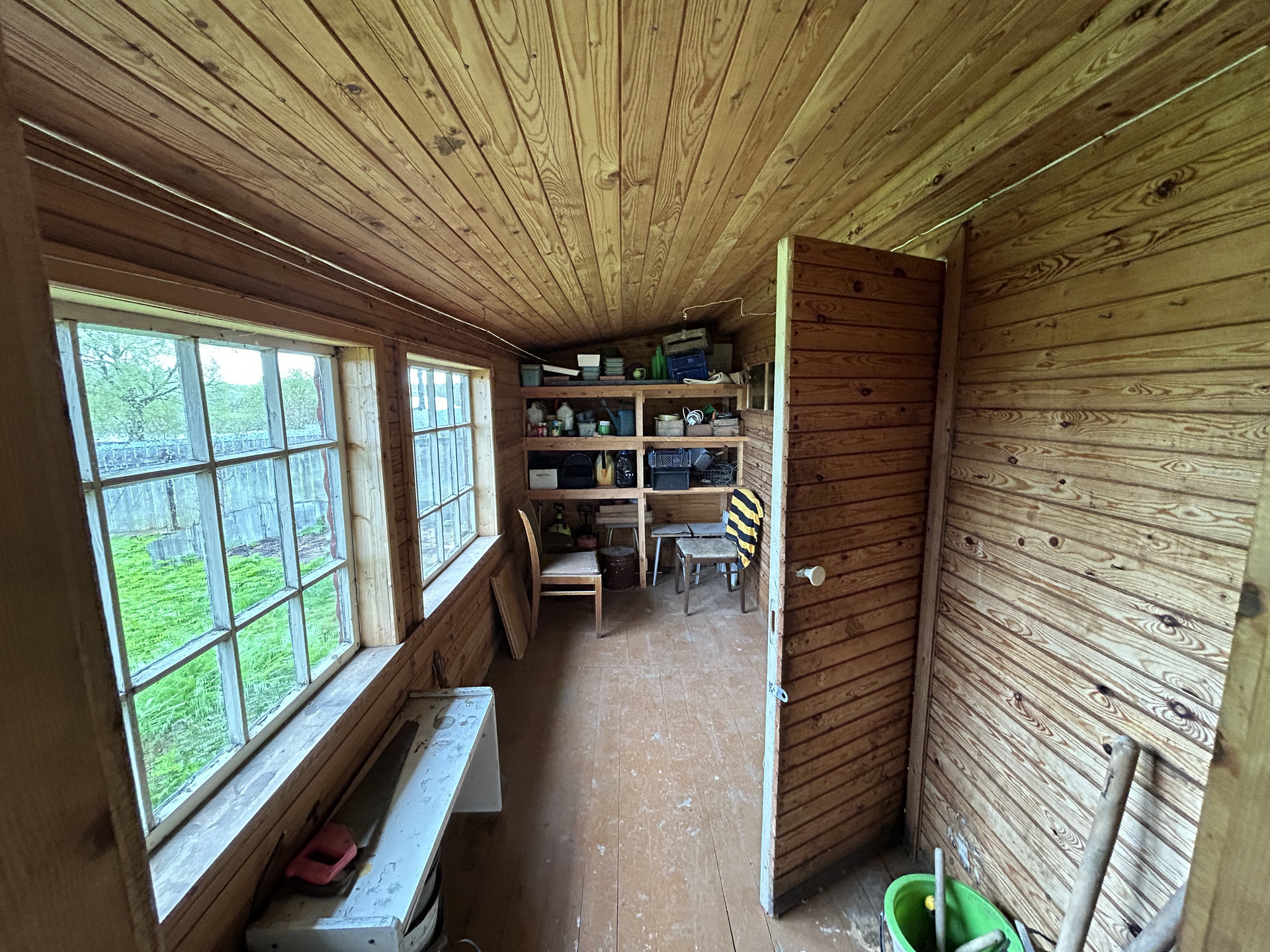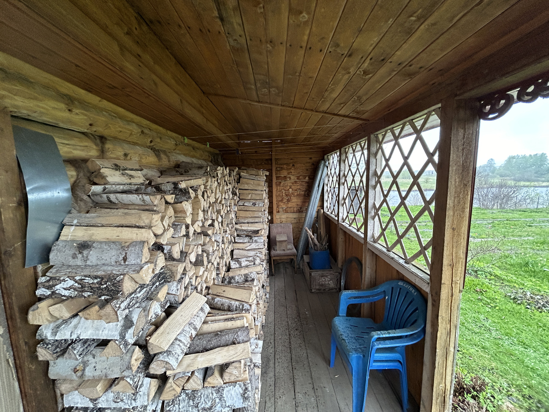 ХОЗЯЙСТВЕННАЯ ПОСТРОЙКА-ДОМИК, ГАРАЖ: Хоз. постройка деревянная, на бетонном ленточном фундаменте, площадью 28.2 кв.м. с пристроенным гаражом 35 кв.м. Состоит из террасы, комнаты, кладовой и мастерской. Второй этаж- высокий чердак. Все в отличном состоянии. Электричество проведено.