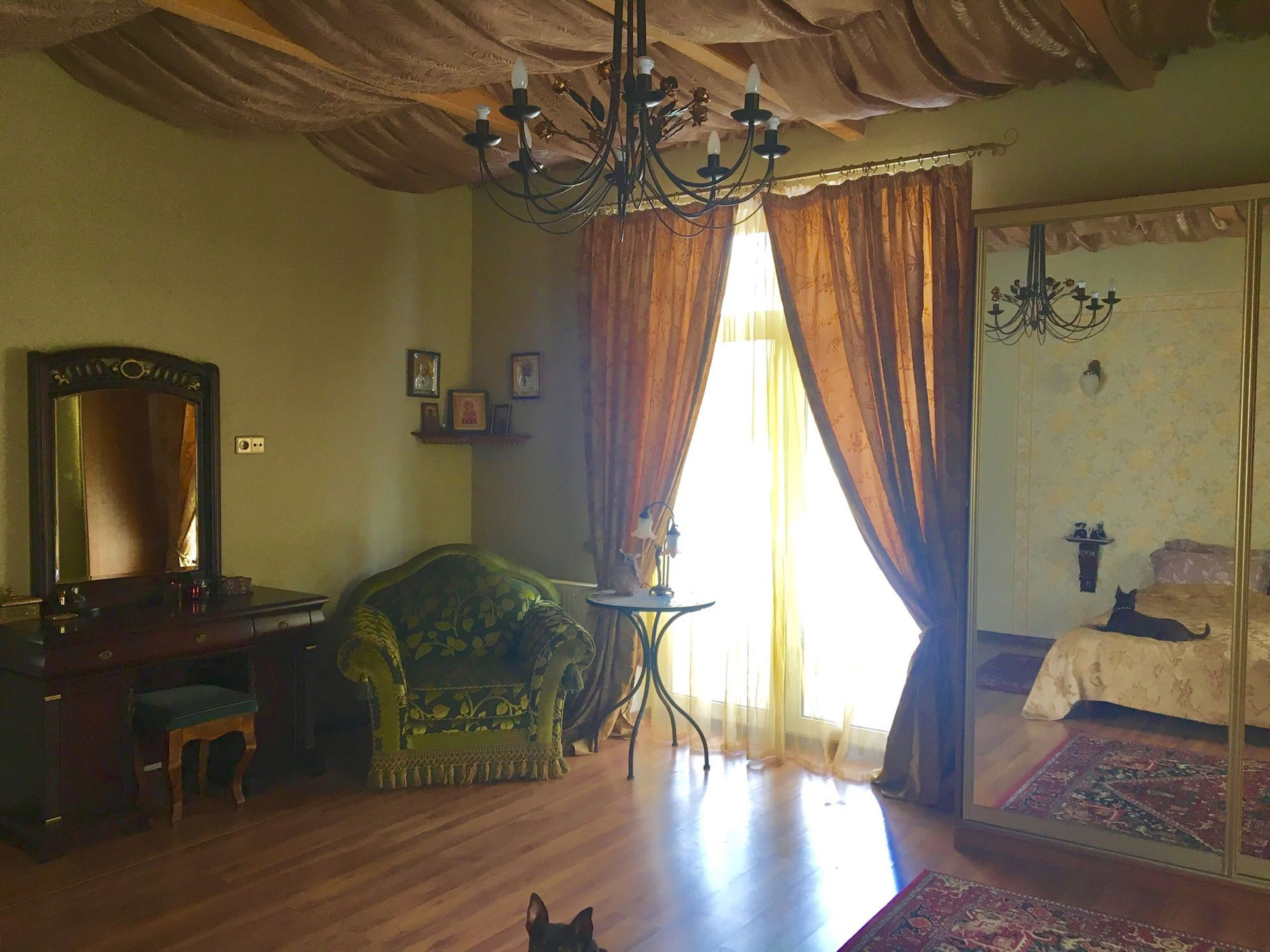 1 этаж: гостиная с французскими окнами в сад, спальня, кухня, ванная комната с гидромассажный ванной.