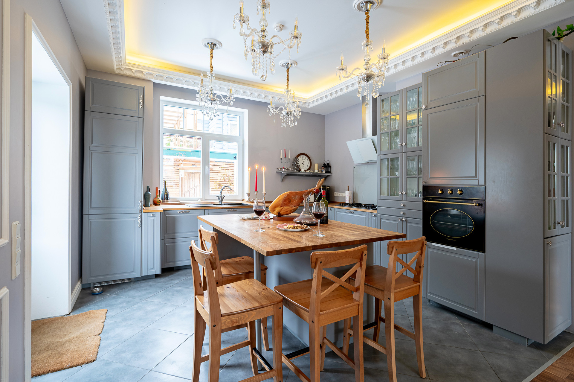 - просторная кухня с островом по центру