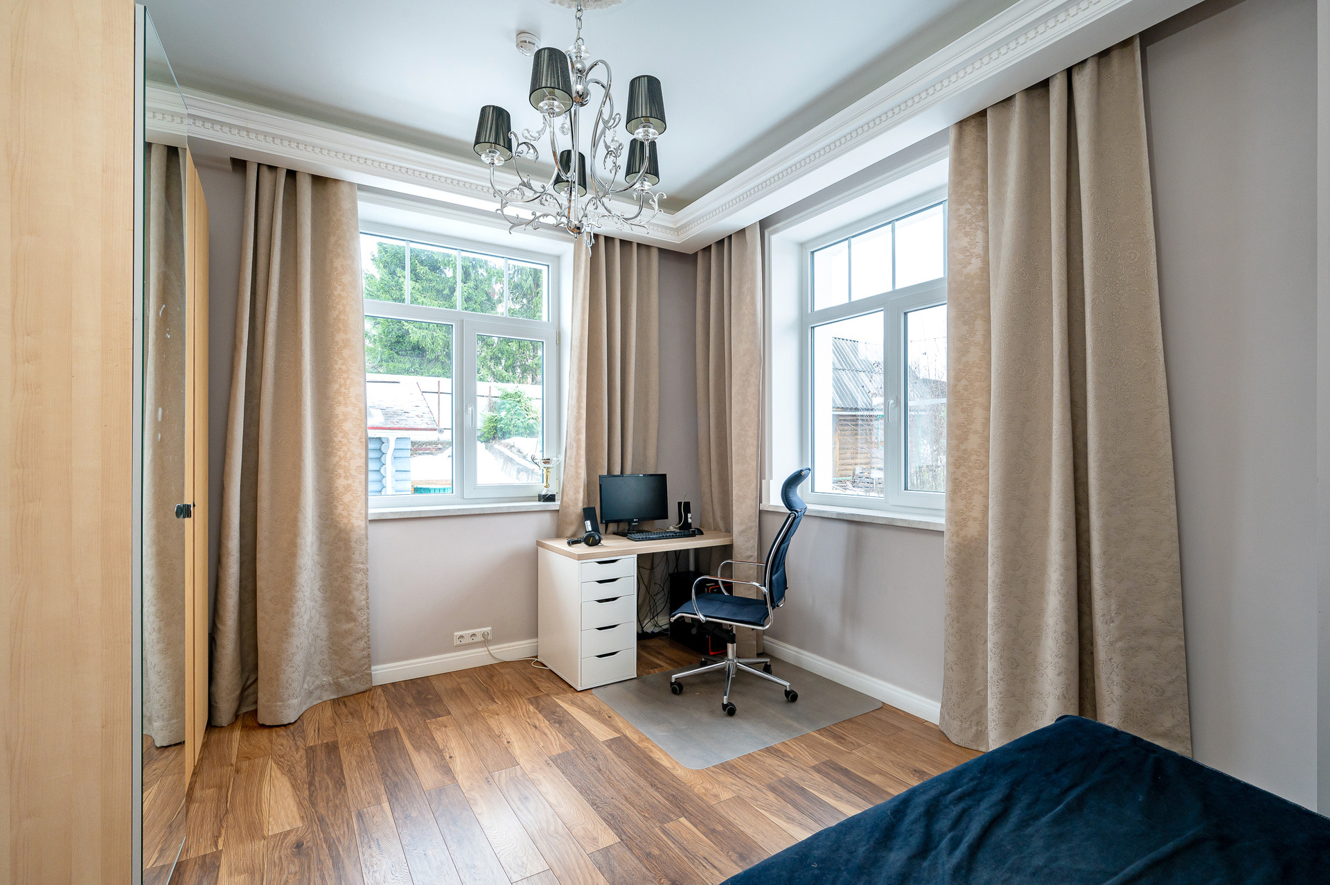 В доме выполнен качественный ремонт по дизайнерскому проекту, основной идеей которого были лаконичность, воздушность и комфортность всех пространств внутри дома. Тщательно подобранный цвет стен, большие окна и хрустальные светильники наполняют дом игрой света и создают ощущения легкости, тепла и уюта. Атмосфера внутри дома одинаково нравится и взрослым и детям. Помещения кухни, каминной зоны, гостиной и домашнего кинотеатра выполнены по принципу открытого пространства, когда визуально люди могут находиться в контакте, при этом, за счёт грамотного функционального зонирования, жильцы и гости могут сгруппироваться по интересам и настроению в том или ином пространстве. При этом, вы можете легко уединиться и обсудить что-то с глазу на глаз, за закрытыми дверями перейдя в кабинет.