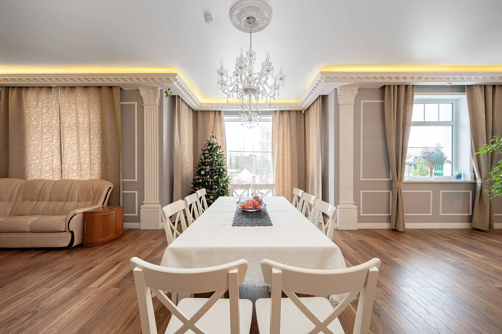 - большая каминная зона с панорамным камином