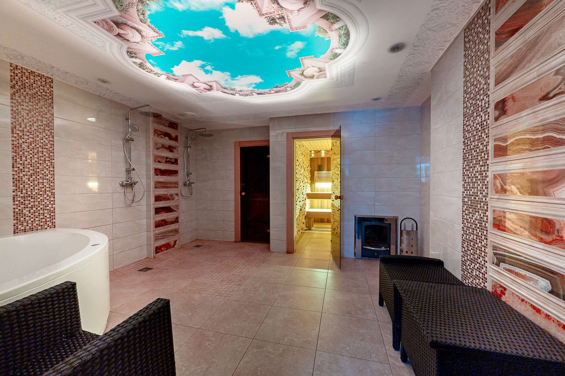 - банный комплекс с парной на 7 человек и просторной комнатой отдыха