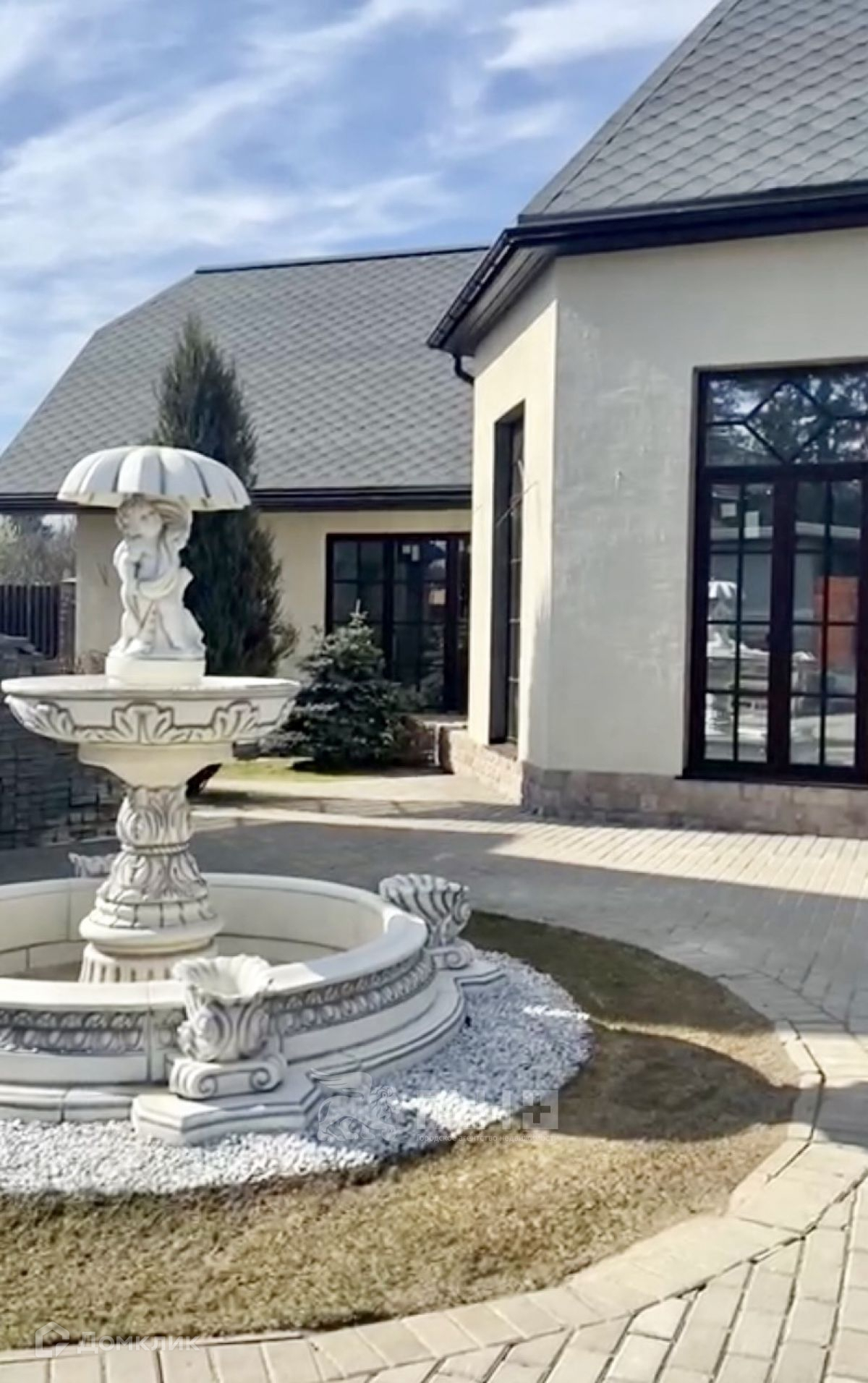 Участок 15,88 соток плюс 4 сотки в аренде - зеленый ровный с яблонями и туями. По всему периметру проведена дренажная система. Расположен на возвышенности. Фешенебельный каменный забор на бетонном фундаменте. На территории установлен действующий фонтан. Также на участке расположен навес, гараж и домик для помощников. Генератор, газонокосилки, снегоуборочные машины и еще много всего полезного - все остается.