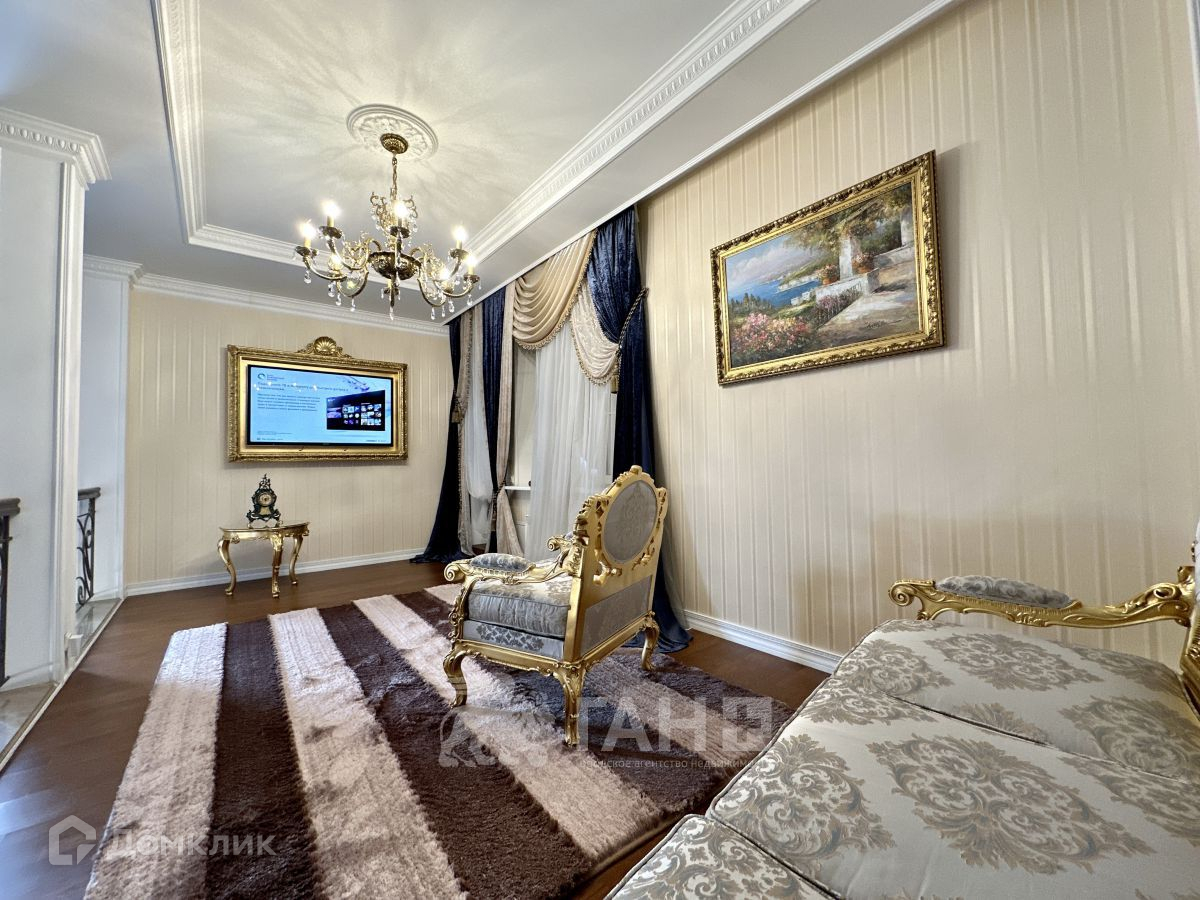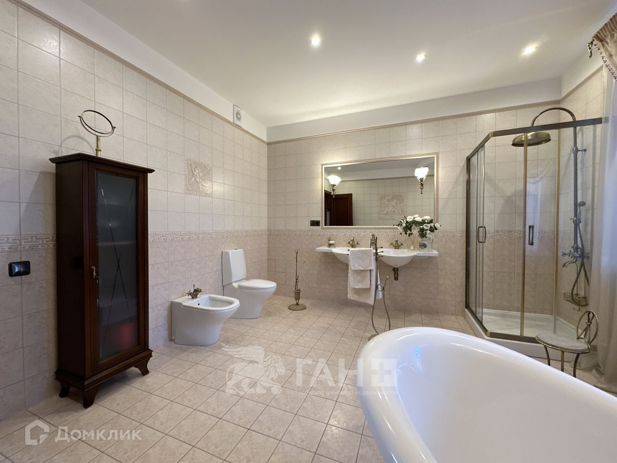 Все сделано из дорогостоящих, качественных материалов. Мебель, техника и предметы интерьера остаются по договоренности. Вся мебель и двери из массива дерева производства Италии и Испании, бронзовые люстры выполнены на заказ в мастерских Италии и Испании. Кухня Scavolini из массива вишни. Вся сантехника - Германия (Villeroy&Boch), Италия. Стиральная и сушильная машины AEG. Обои первого и второго этажа - ткань, третий этаж - шелк на бумаге.