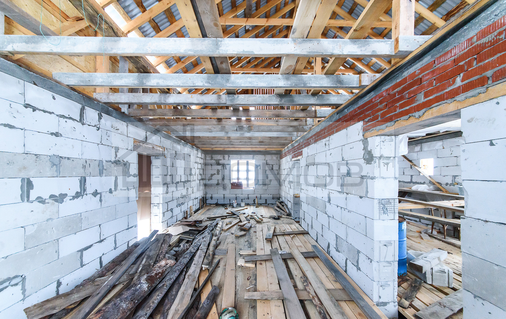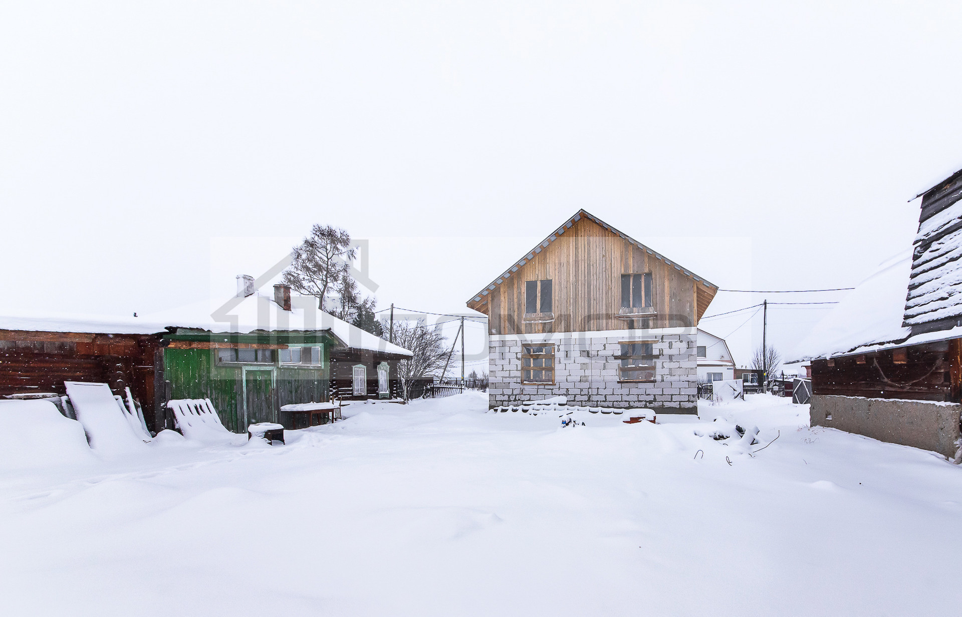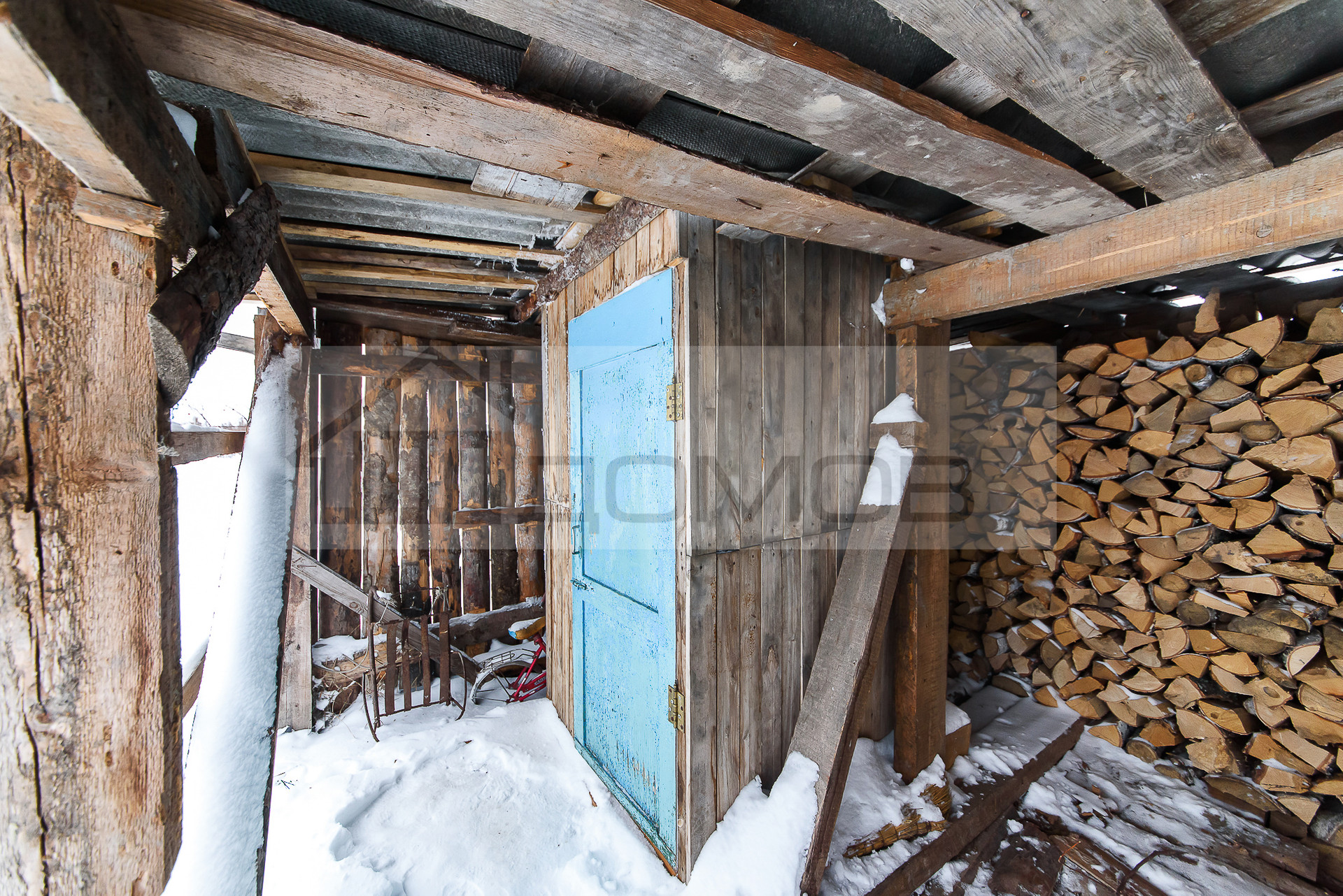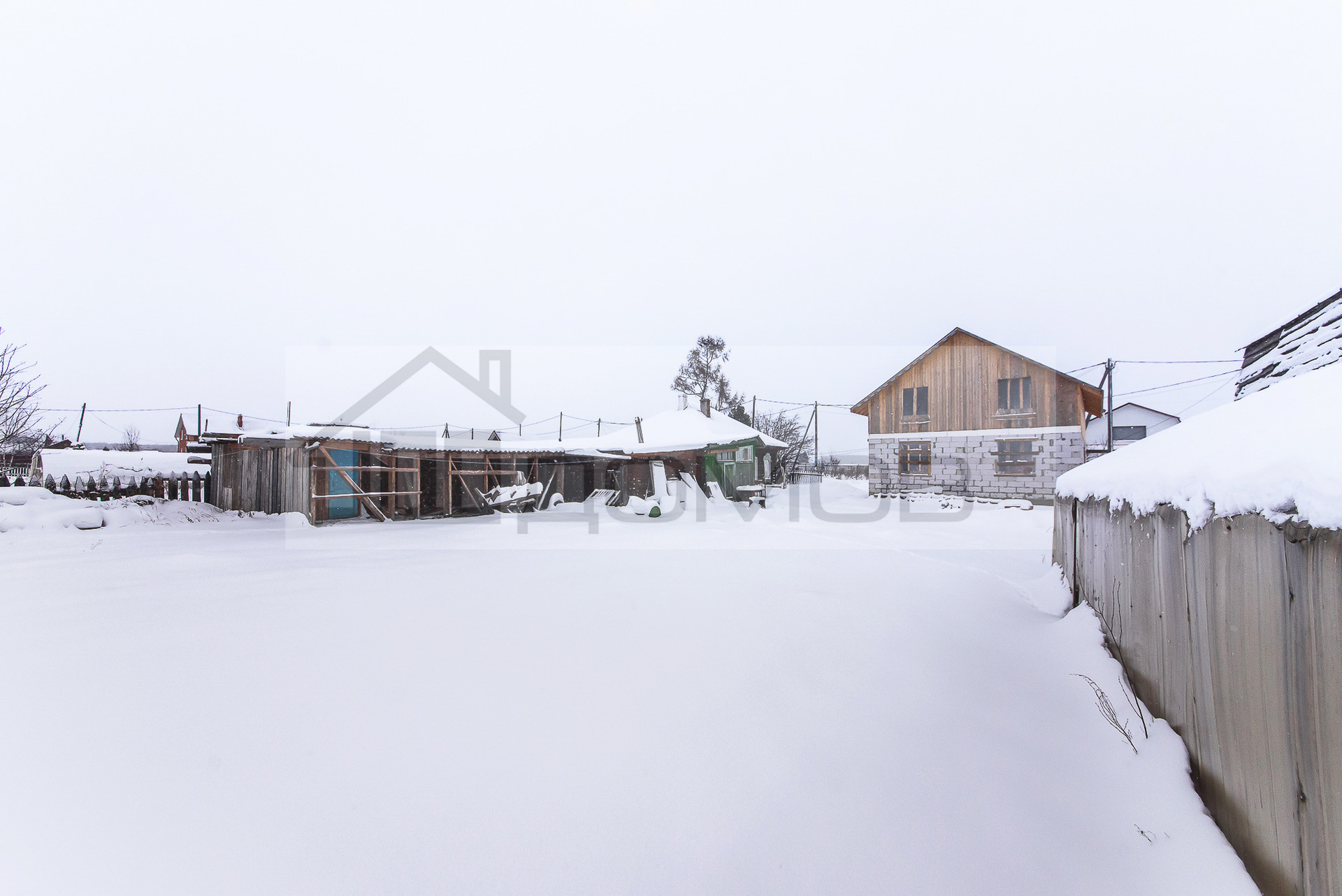 Большой крытый двор, позволит хранить различный инвентарь, есть дровяник. На участке так же есть недостроенный дом 10,5*8,5. Можно проживать и достраивать новый дом.