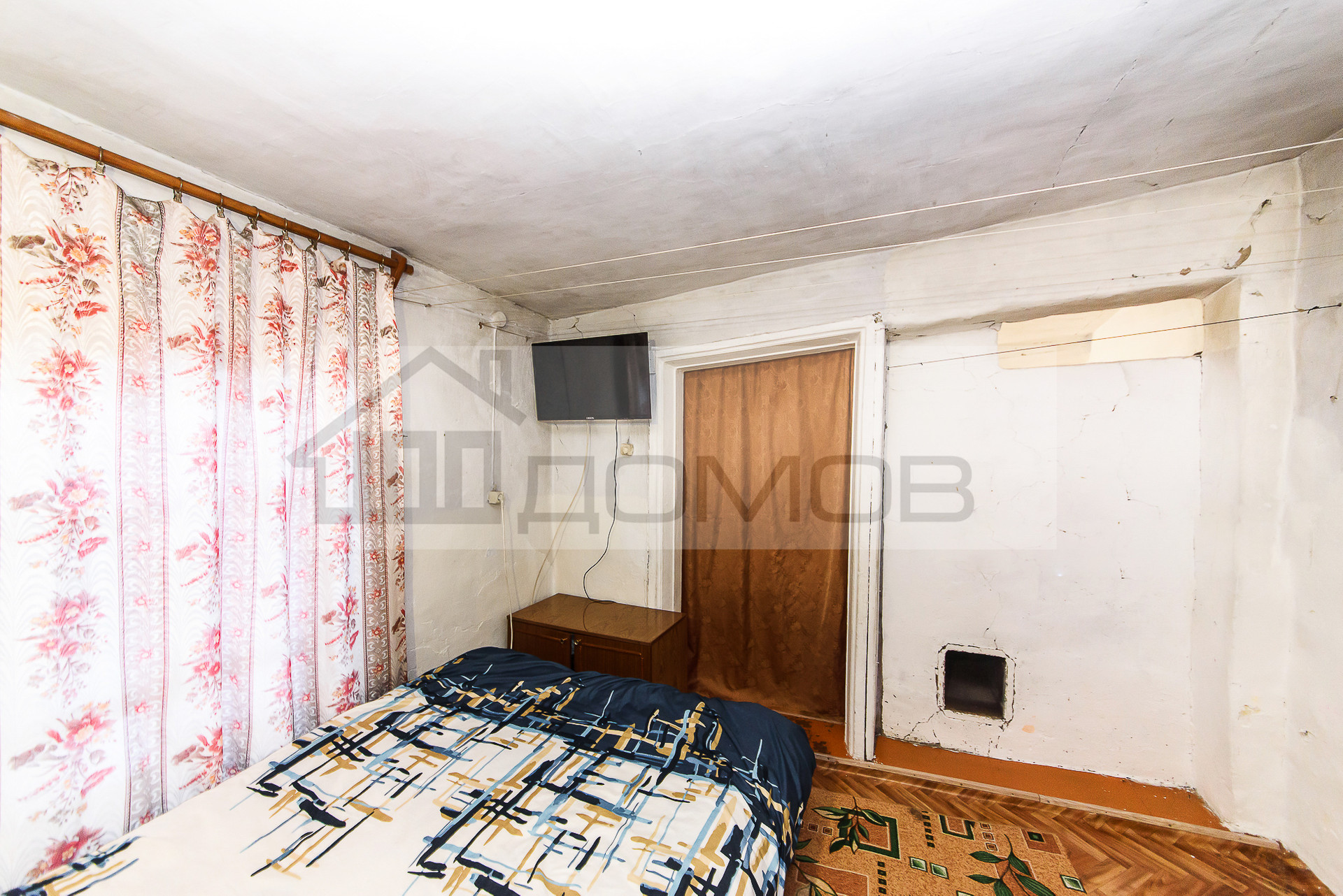 Дом в жилом состоянии. Материал дома – дерево. Дом расположен на 24, 6 сотках земли, участок имеет ровную, правильную форму. Назначение земли ИЖС. Есть 2 комнаты-проходные, летняя веранда, холодная прихожая, баня. Отделка простая. Центральные коммуникации – электричество и водоснабжение, отопление: печное.