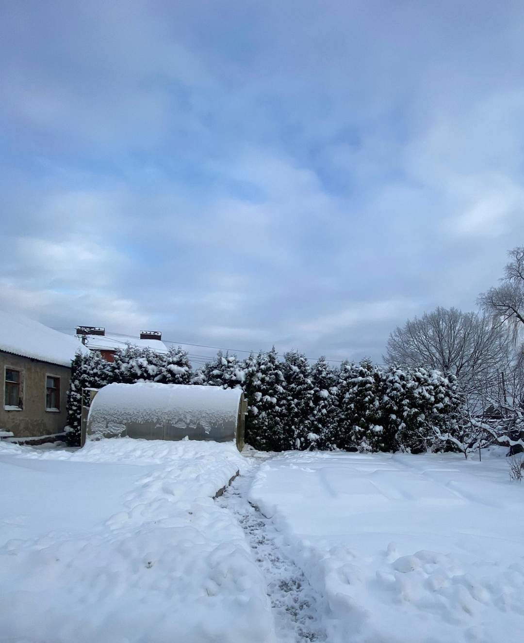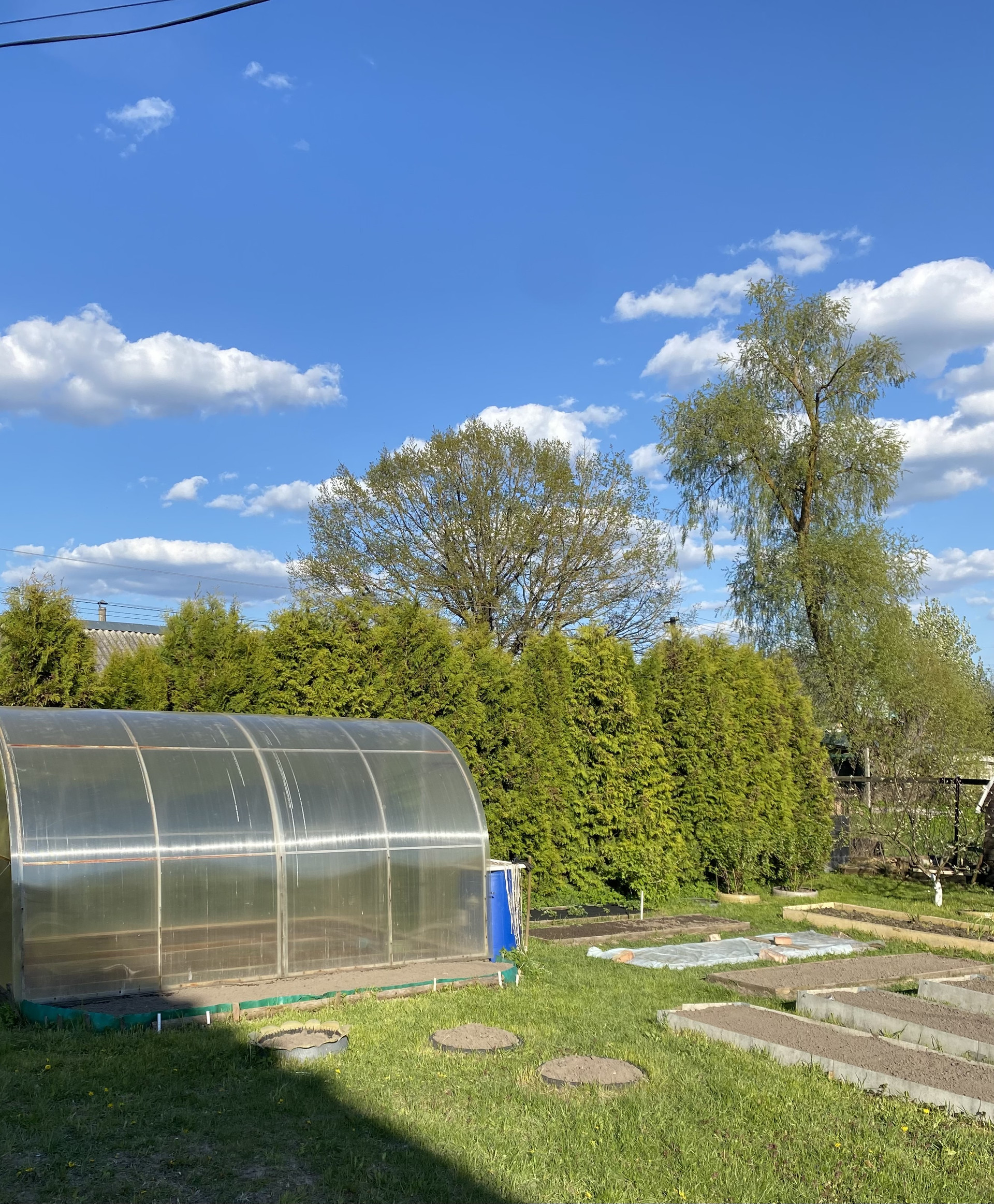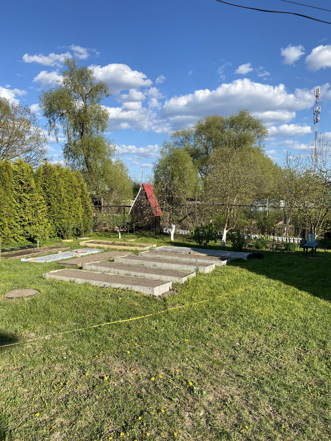 На ровном плодородном участке плодоносящий сад, кустарники, теплица, разработаны грядки, клубника, живая изгородь из 30 прекрасных туй, газон, много места для отдыха, баня (которую осталось обшить снаружи, материал имеется), хоз-постройка для хранения.