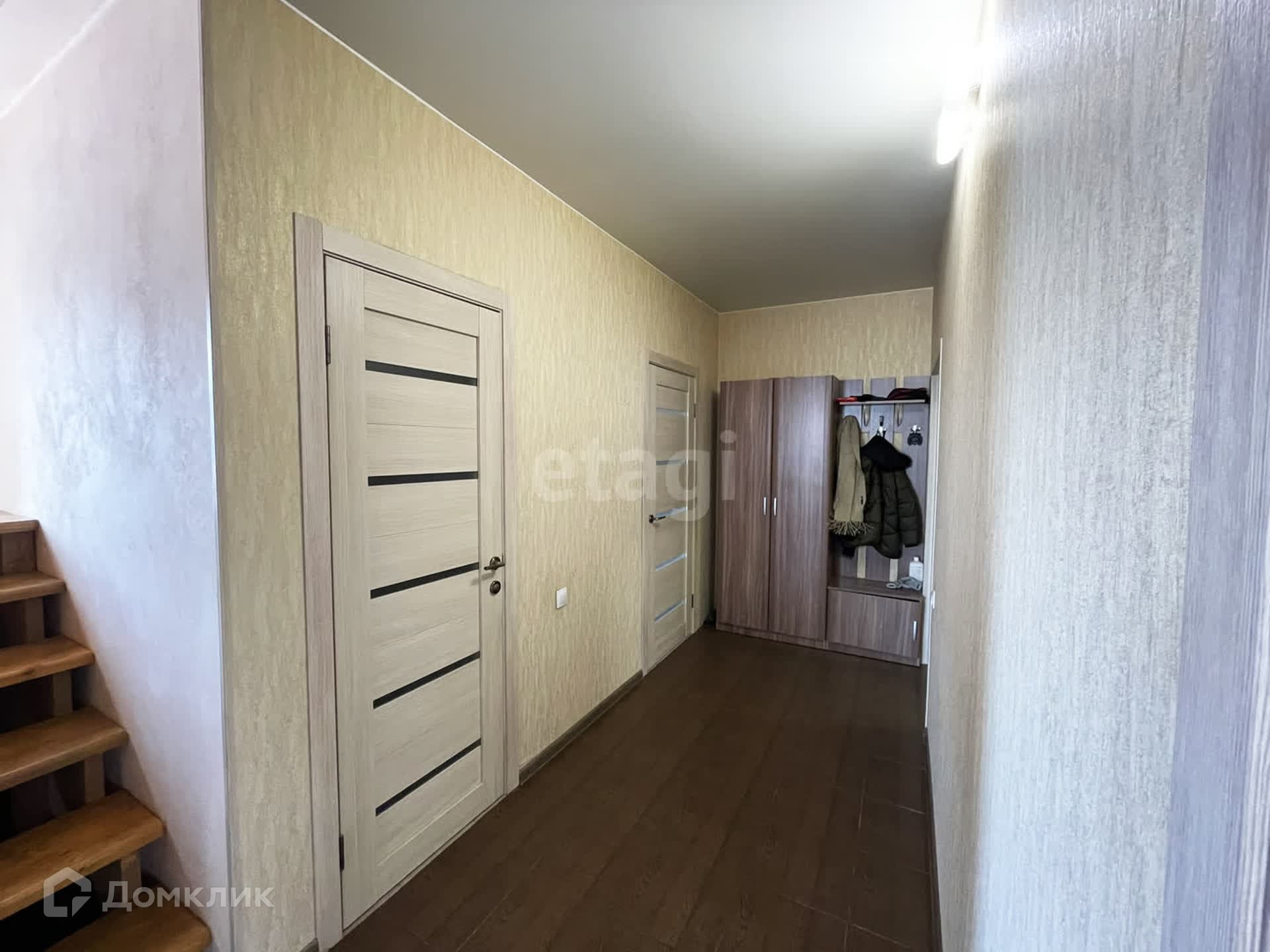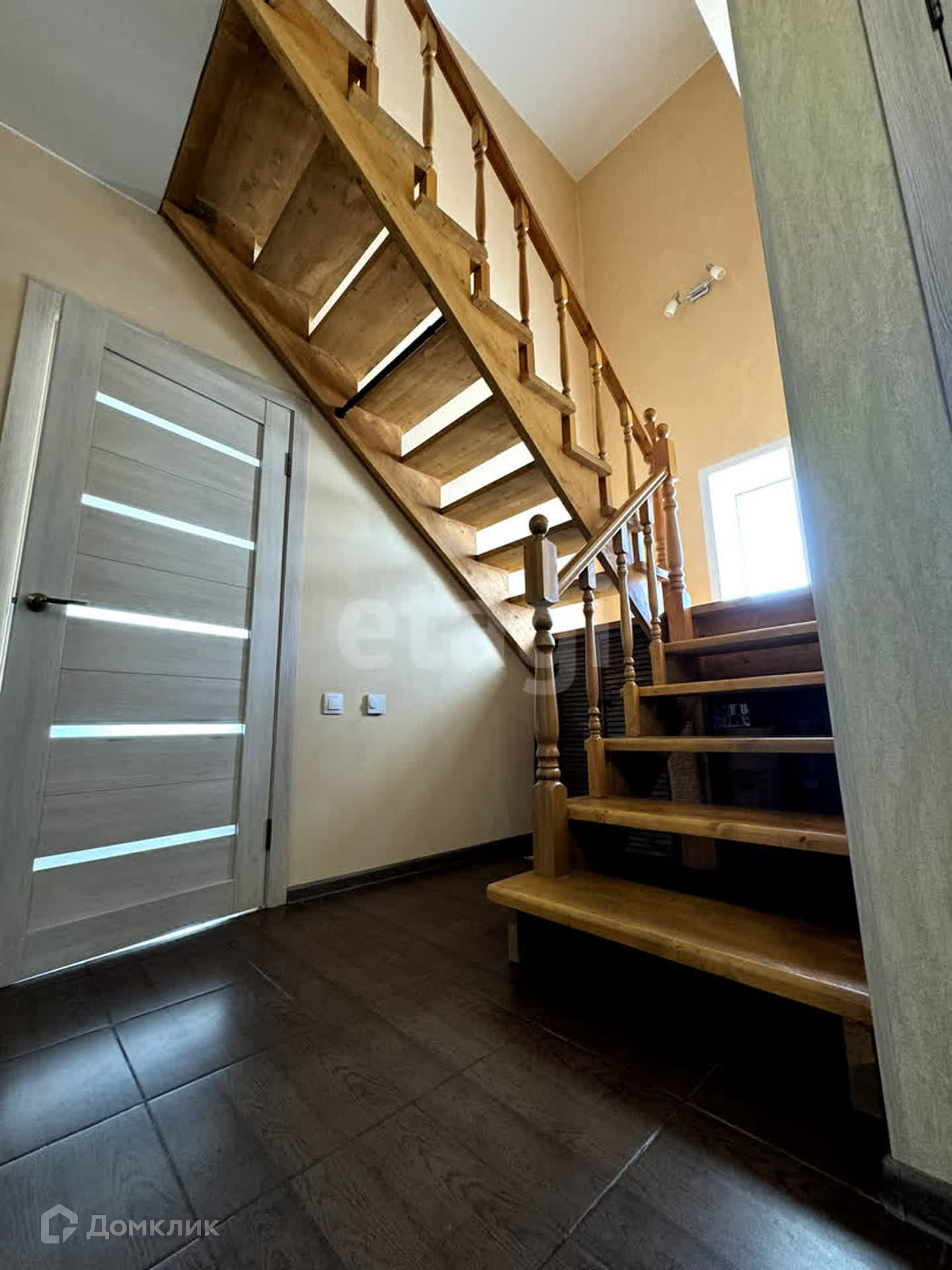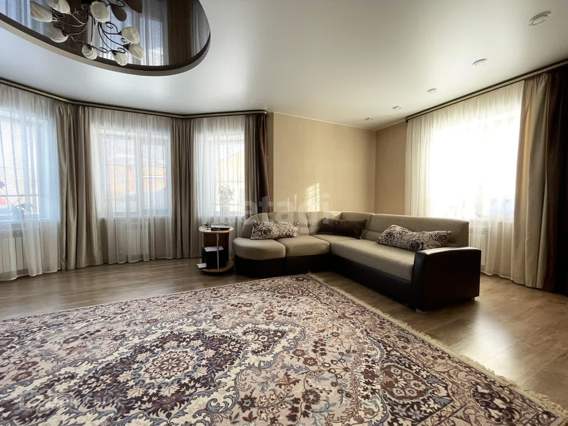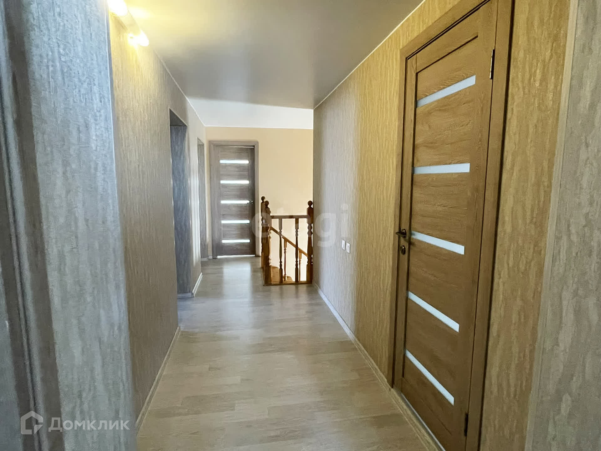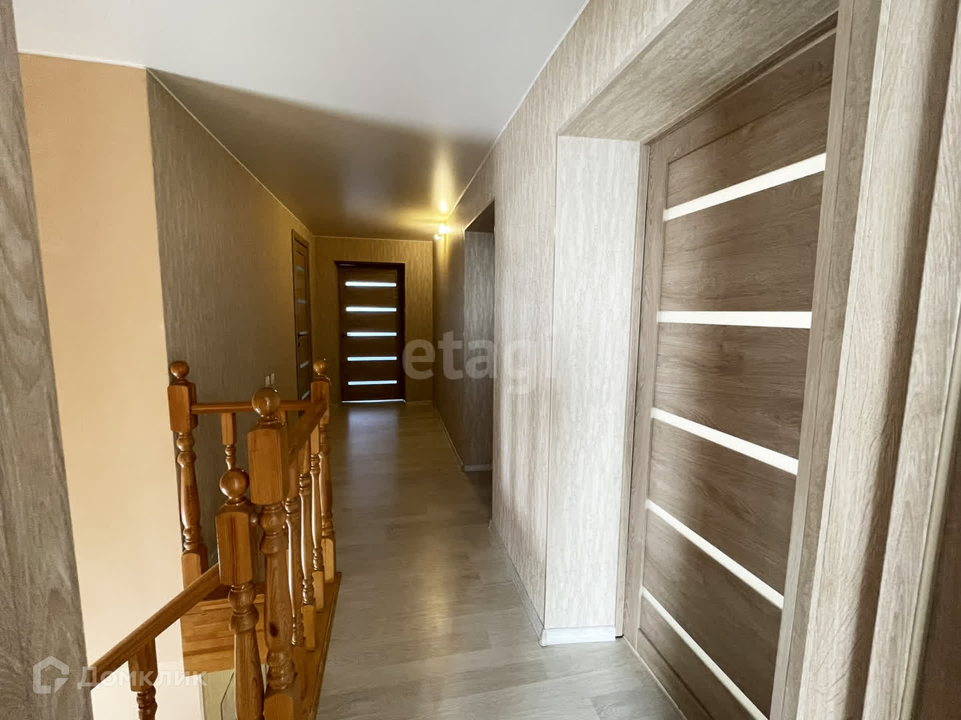 Внутри дома удобная планировка и качественный ремонт, натяжные потолки, на полу ламинат и плитка, теплый пол на первом этаже. В санузлах плитка. Деревянная лестница.