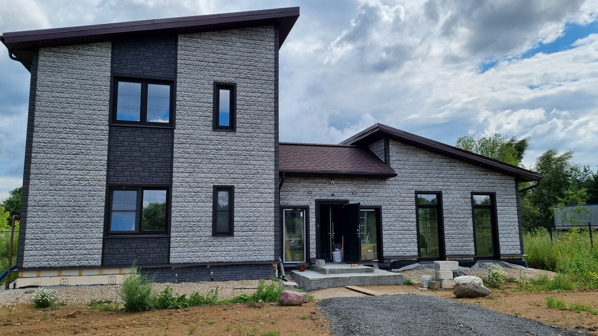 Дом новый, расположен на краю деревни и граничит с зелёным массивом. Отлично подойдёт для людей ищущих уединение от городского шума и суеты. В доме 4 жилые комнаты с персональными с/у, в противоположном жилой части крыле дома расположена просторная кухня гостиная 40м2 с панорамными окнами и высотой потолка от 3 до 4.5 м. Дом выполнен из газобетона 375 мм, что создаёт атмосферу близкую к деревянным домам. Остекление стеклопакеты Века 82 мм с мультистеклом. Газ магистральный,  Отопление обеспечивается двумя газовым котлами , водоснабжение скважина с системой водоочистки, электричество 15КВт, канализация остендорф с септиком Топаз 8.