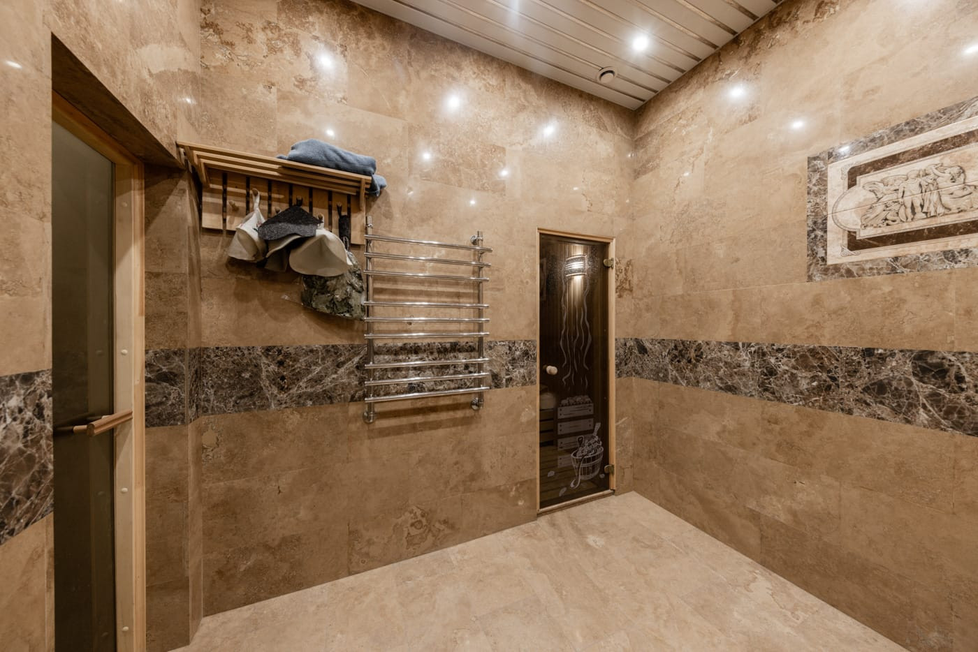 Мансарда (выполнена "под ключ"): высота потолка в самой высокой точке 5,0 м: этаж обшит деревом - блокхаус: на этаже находится - комната свободного назначения, с/у (установлено джакузи)