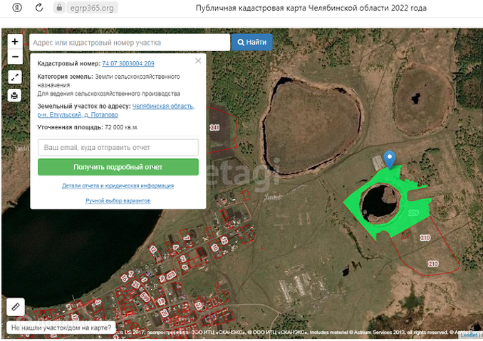 Продаётся земельный участок сельхозназначения площадью 72000 м.кв. рядом с деревней Потапово Еткульского района в экологично чистой и живописной территории 50 км от г.Челябинска. Участок расположен вокруг небольшого водоёма, что придаёт данному участку большую изюминку! Превосходное место для уединения от городской суеты, превосходное для реализации сельхоз идей! Рядом с участком лес, где много ягод и грибов. Деревня Потапово газифицирована, есть школа, детский сад, магазины. Рядом с данным участком также продаётся земельный участок площадью 72000 м.кв. с кадастровым номером 210 от одного собственника. Номер в базе: 8565833. Район: Потапово д