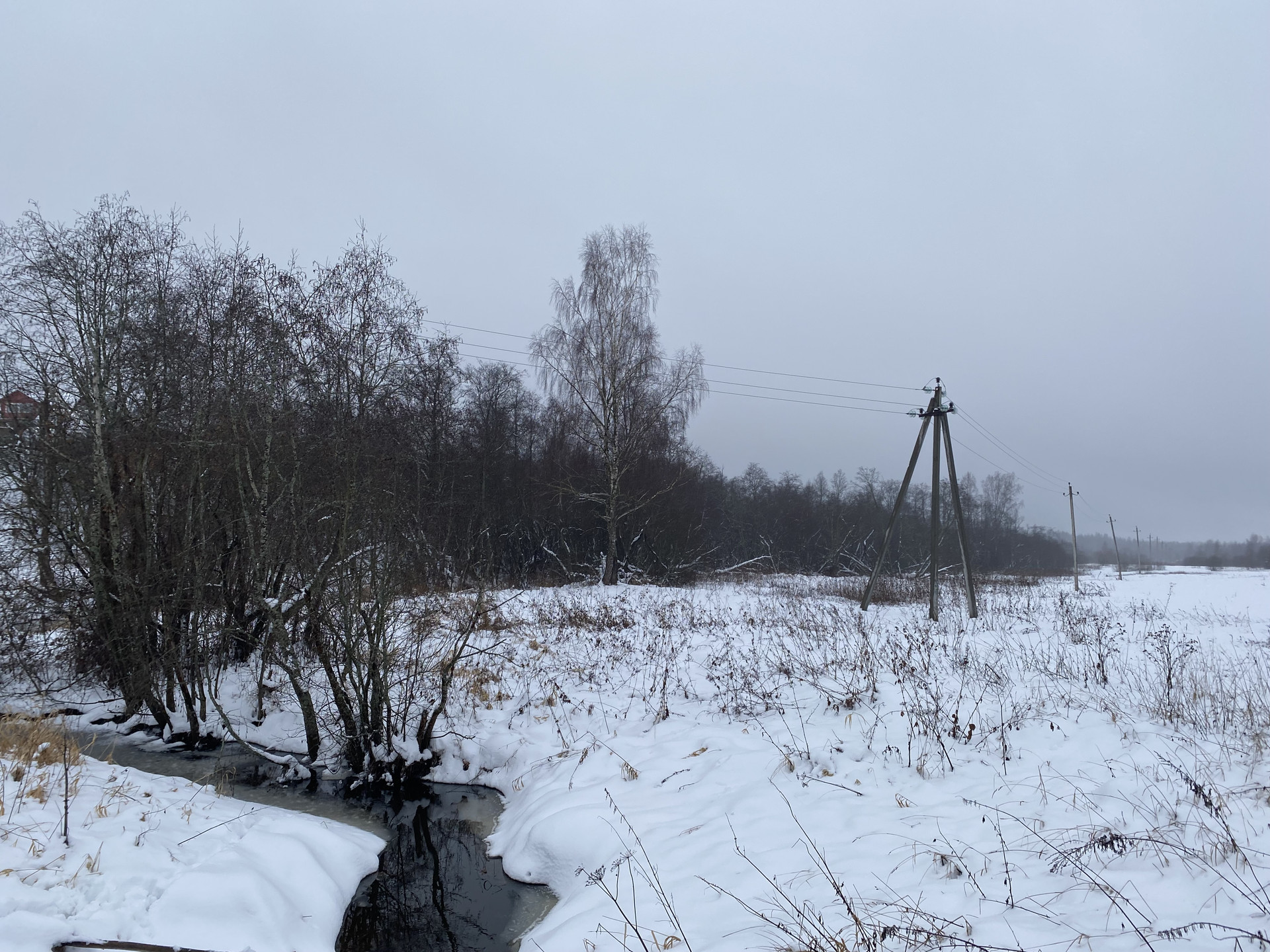 По границе проходит линия электропередач.