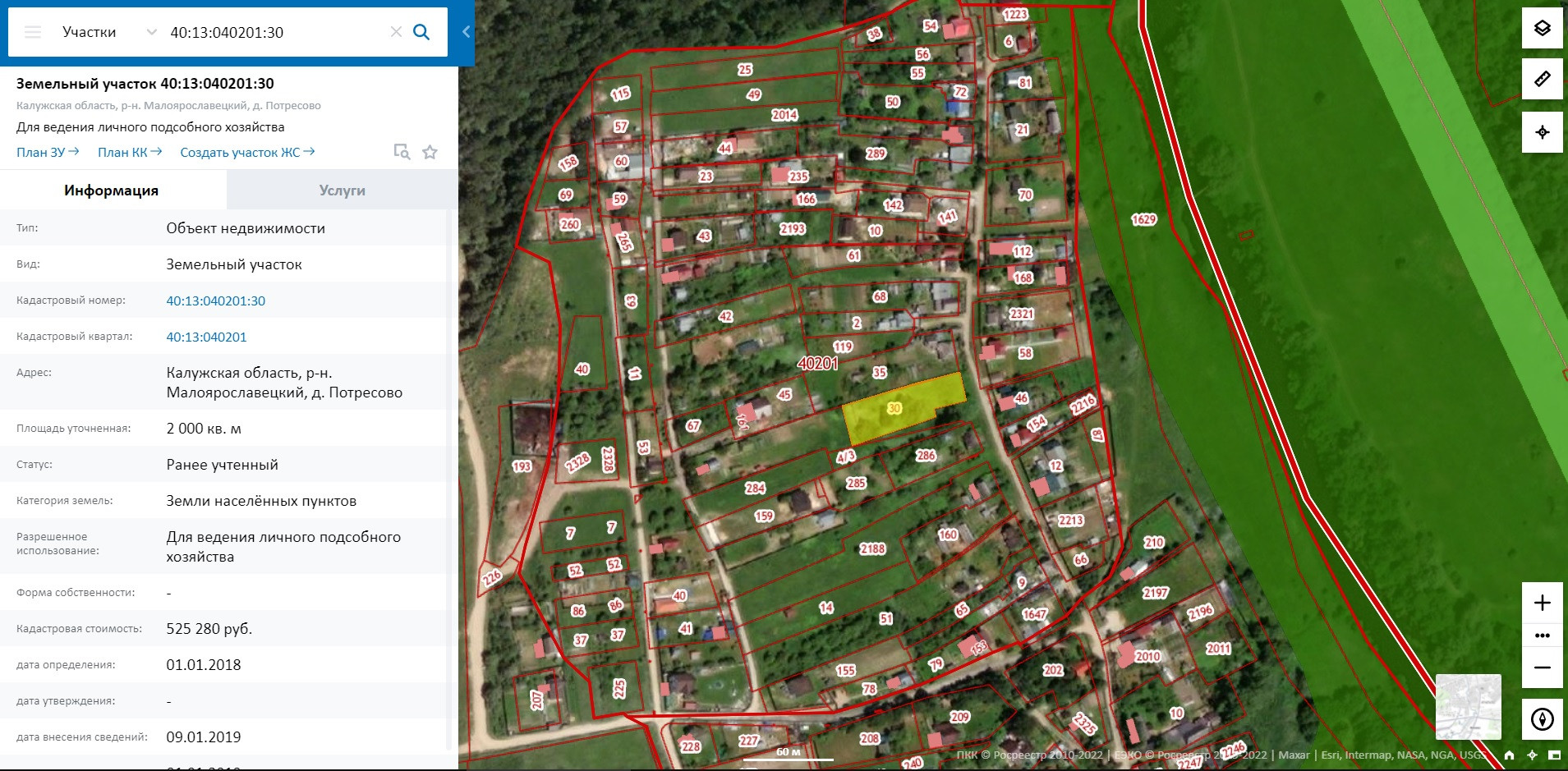 Продается участок 20 сот. ЛПХ на Центральной улице д. Потресово, Малоярославецкого р-на Калужской обл. Участок правильной формы (примерно 23 м. шириной и 80 м. длиной), имеет небольшой уклон (всегда сухой и солнечный), частично огорожен от соседей. Электричество по границе 15 кВт, центральный водопровод, асфальтированная дорога. В центре деревни продуктовый и строительный магазины, детская площадка. Деревня частично газифицирована, соседи проживают круглогодично, (участок подходит для строительства жилого дома с пропиской), подъезд круглогодичный. Участок расположен в живописном, экологически чистом, тихом месте, рядом река Протва. В паре километрах ж/д станция Шемякино, Киевское и Калужское шоссе, и г. Обнинск. Документы оформлены, проведено межевание.