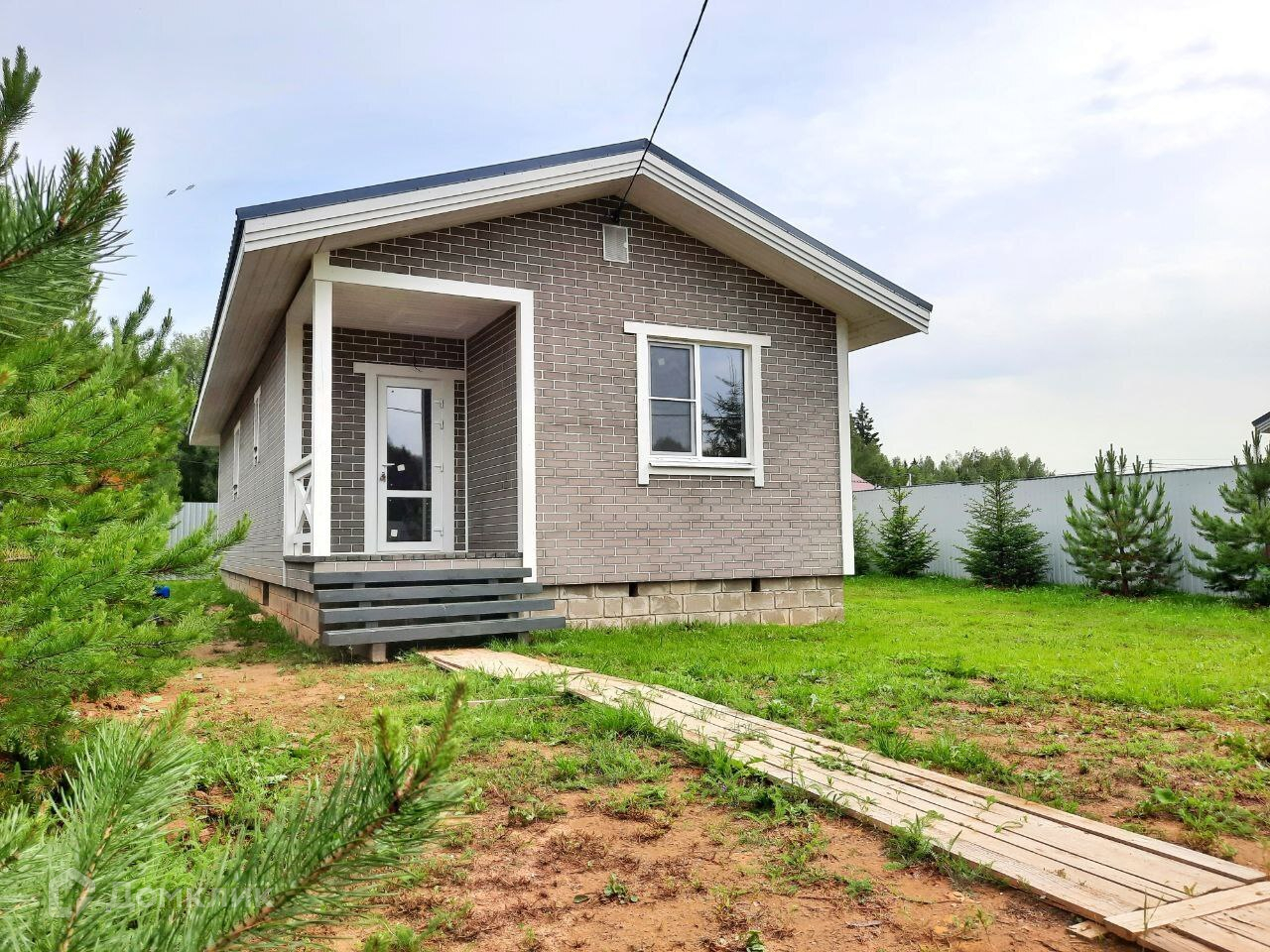 Дом расположен на ровном огороженном забором участке 6 соток, посажены 15 летние сосны и ели. На участке установлен навес под 2 автомобиля, откатные ворота. Имеется место для огородничества. Уютный вариант для постоянного проживания.
