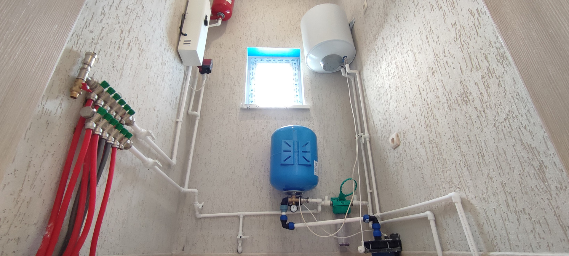 Котельная полностью укомплектована необходимым оборудованием: скважина 60 метров (артезианская вода), автономная станция водоснабжения с расширительным баком и центробежным глубинным насосом, бойлер для подачи горячей воды, трёхфазный жидкостный электрокотел, электрощиток с современными защитными автоматами, септик-дренаж