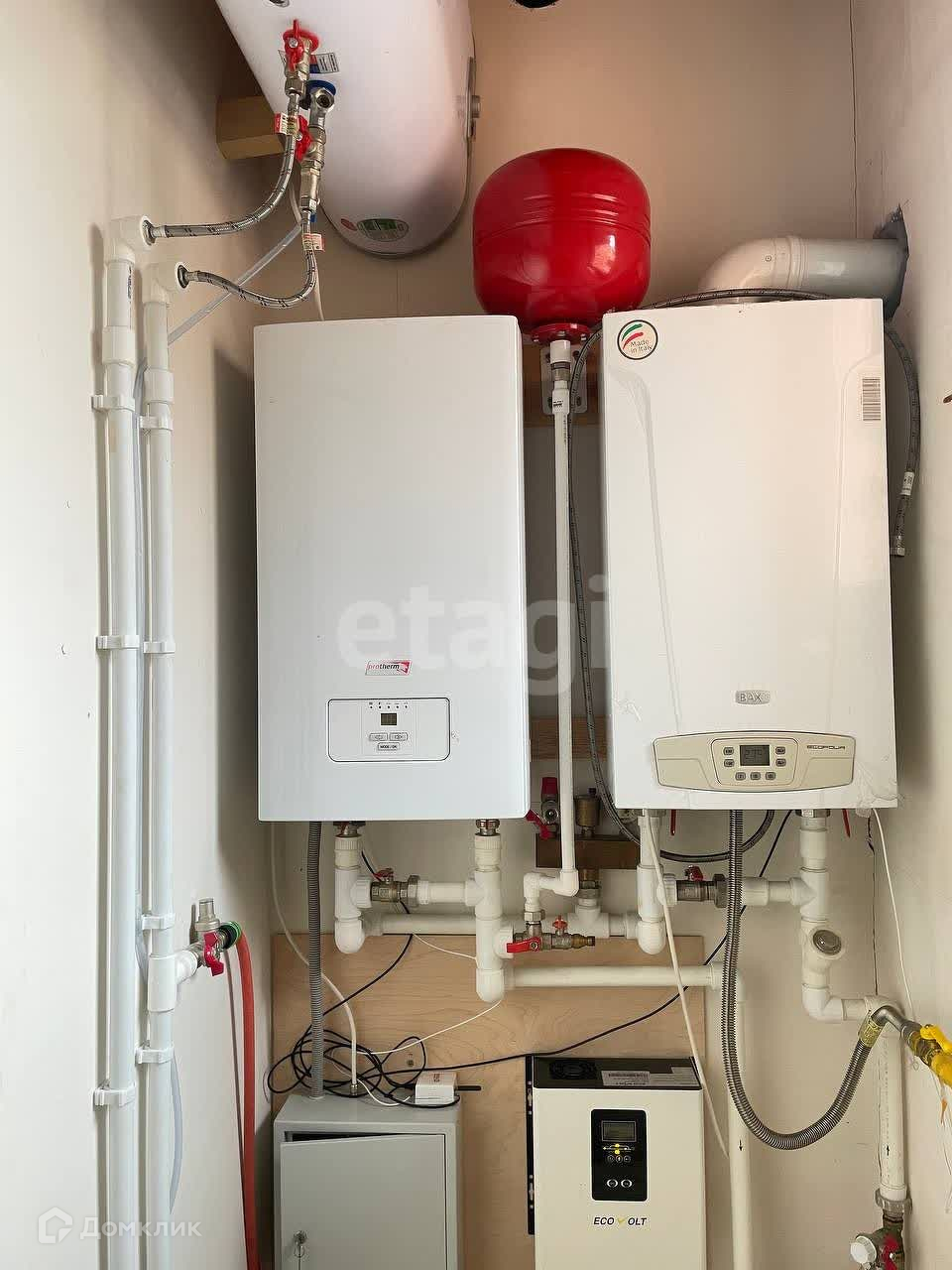Дом построен из газоблоков с утеплением и отделкой кирпичом. Отапливается газом, имеется резервный электрический котел. Электроснабжение - 15 кВт. Две скважины глубиной по 30 метров.