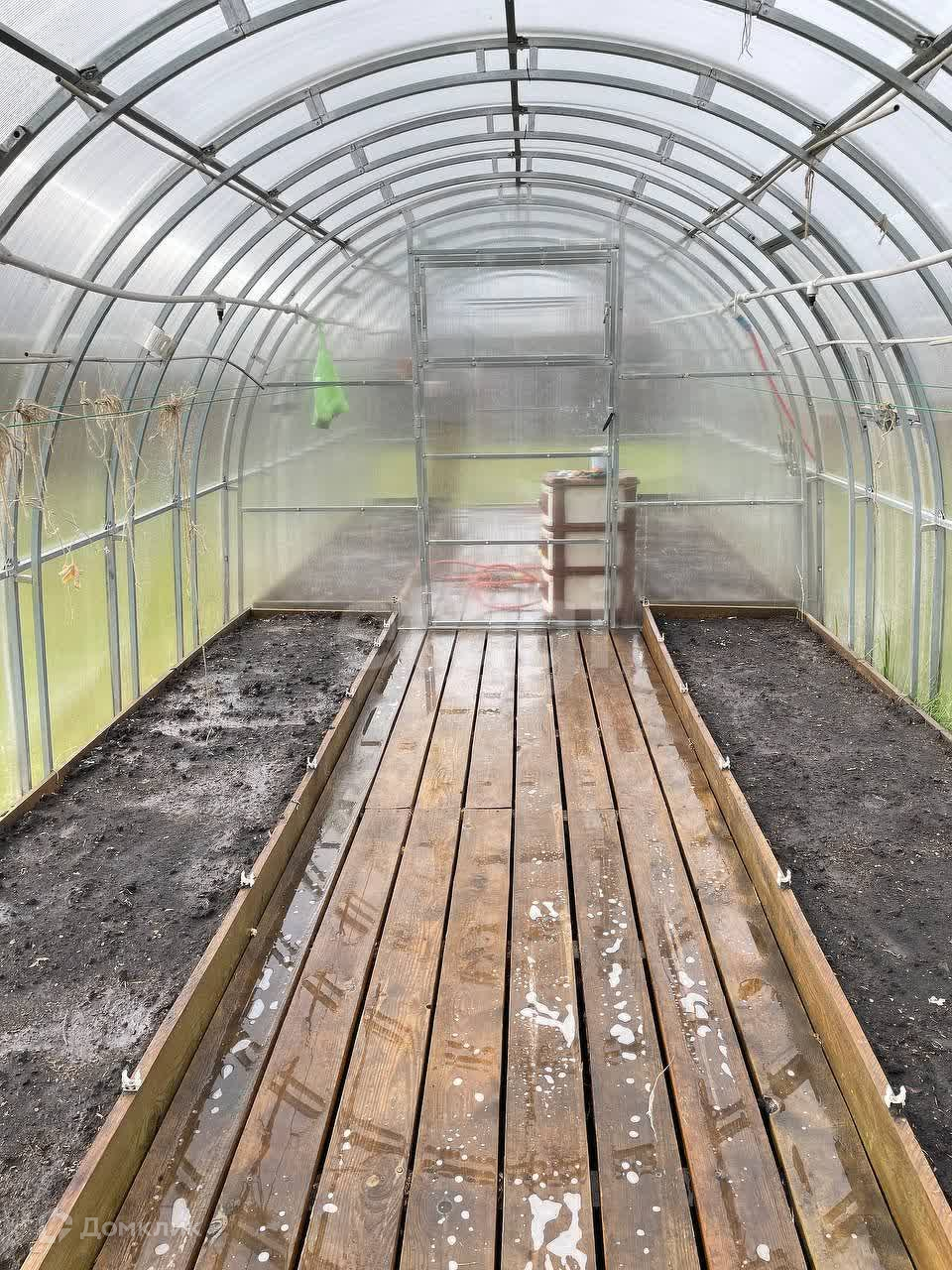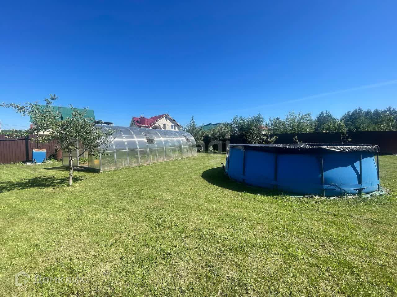 На участке плодоносящий сад (яблоко, груша, слива, облепиха), теплица длиной 8 метров, с автоматическим поливом. Уличный каркасный бассейн диаметром 5м с подогревом воды.