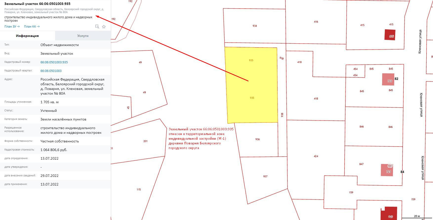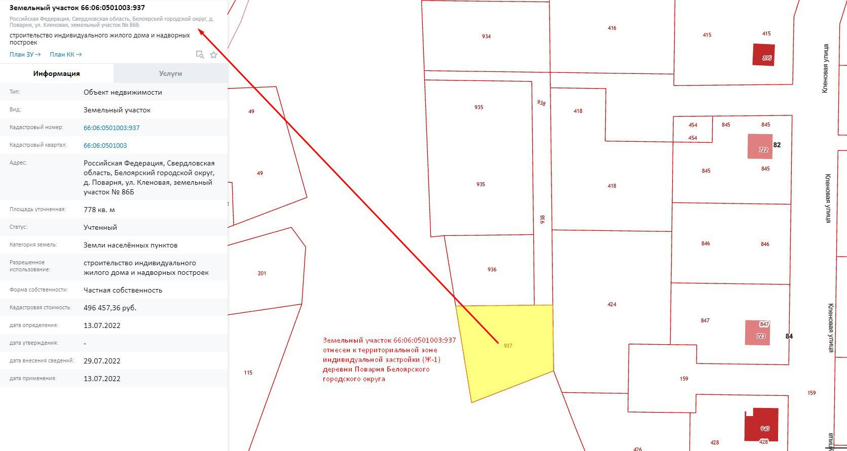 Участок под ИЖС, 9.37 сот. на продажу в деревне Поварне, Кленовая улица