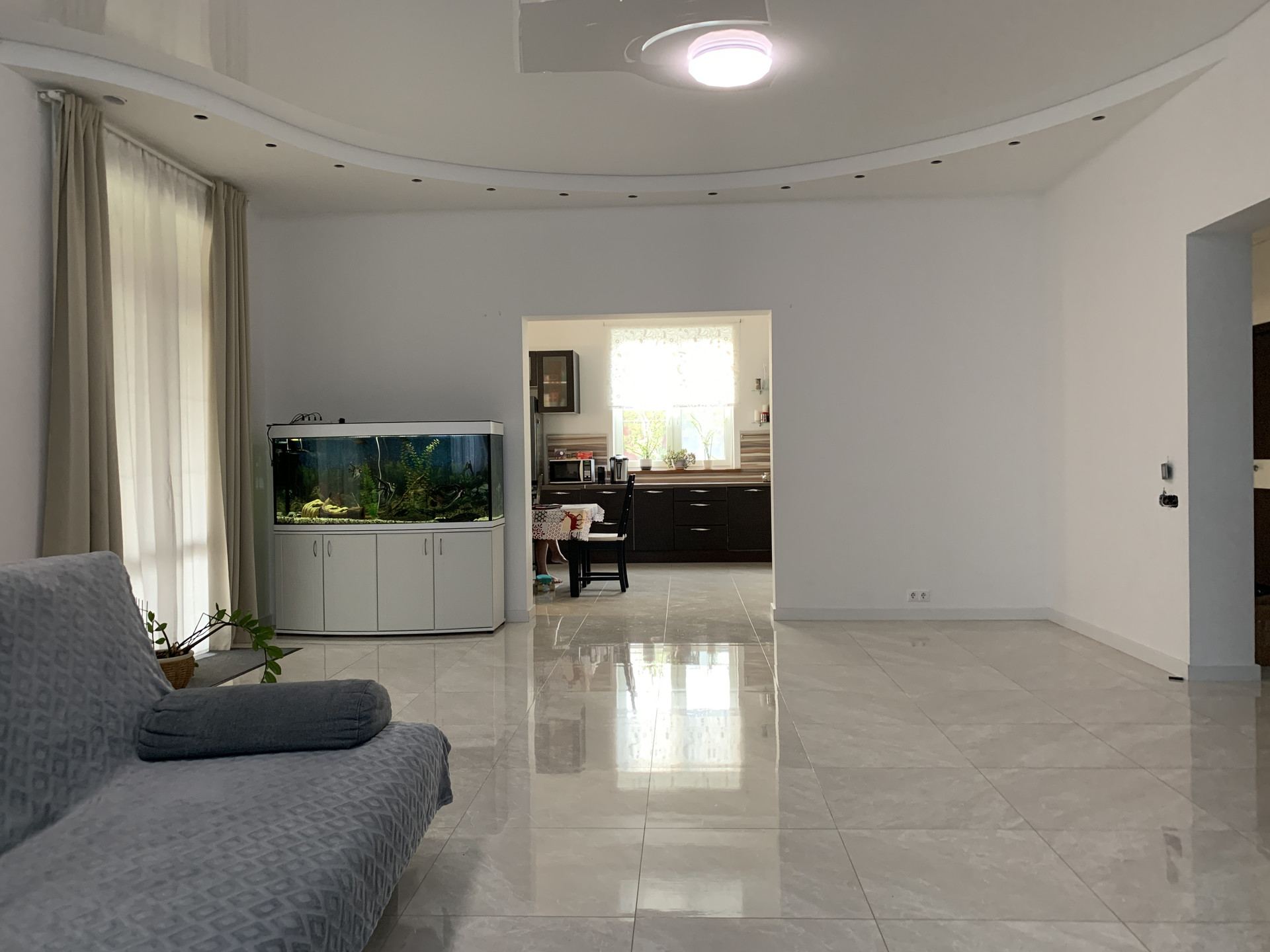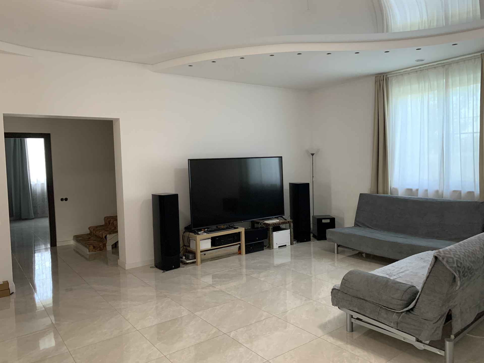 Водяной теплый пол всего первого этажа обогревает идеально, с регулировкой по зонам. Мягкое комфортное тепло.