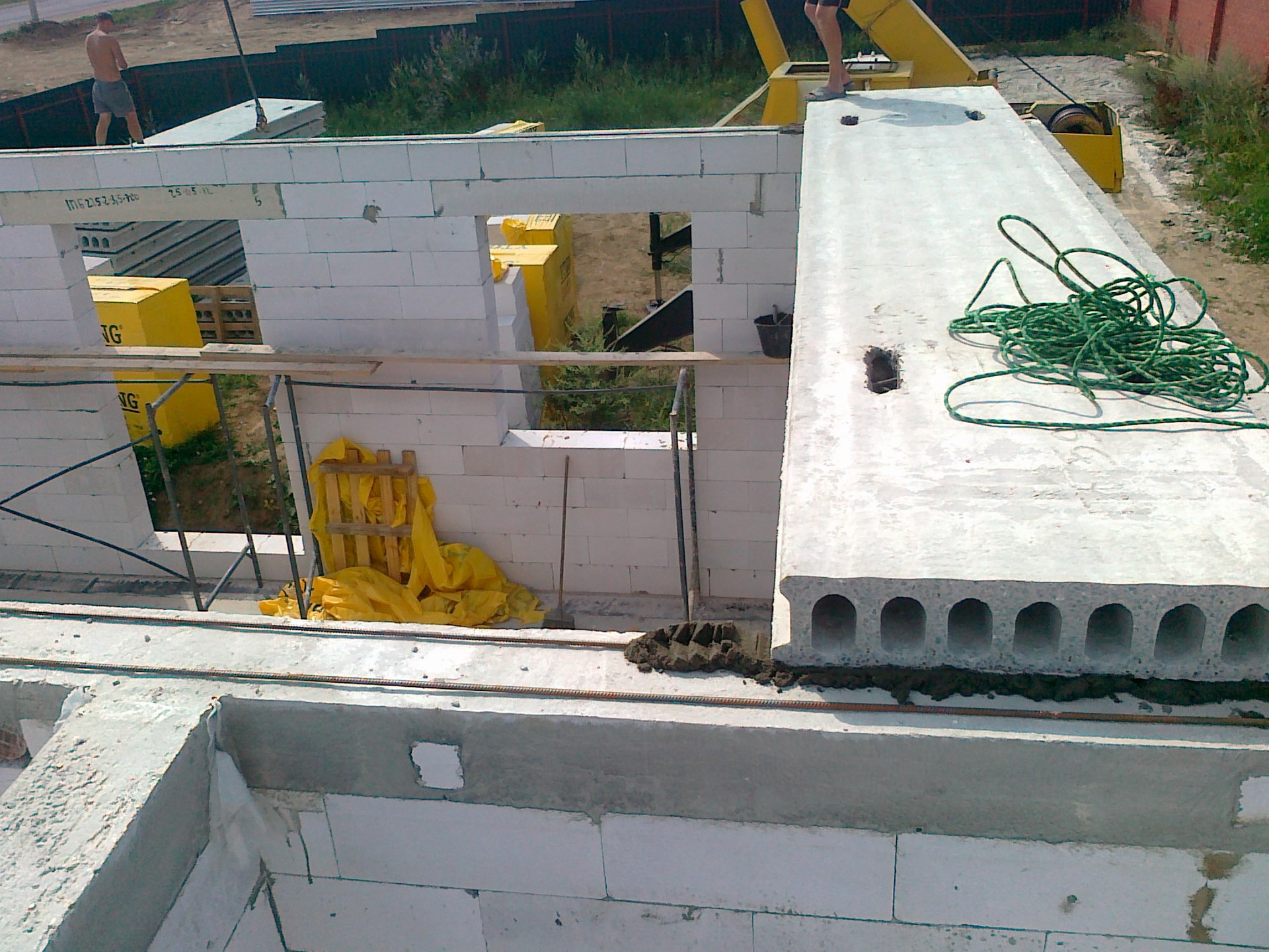 Стены – газосиликатные блоки Ytong D500 B3.5 F100 на тонкошовный клей Ytong, армирование по технологии. Заводские перемычки над проемами из армированного газосиликата под мои размеры. Армопояс из арматуры 16мм в 4-6 стержней и бетона М400.