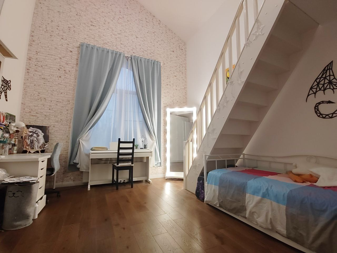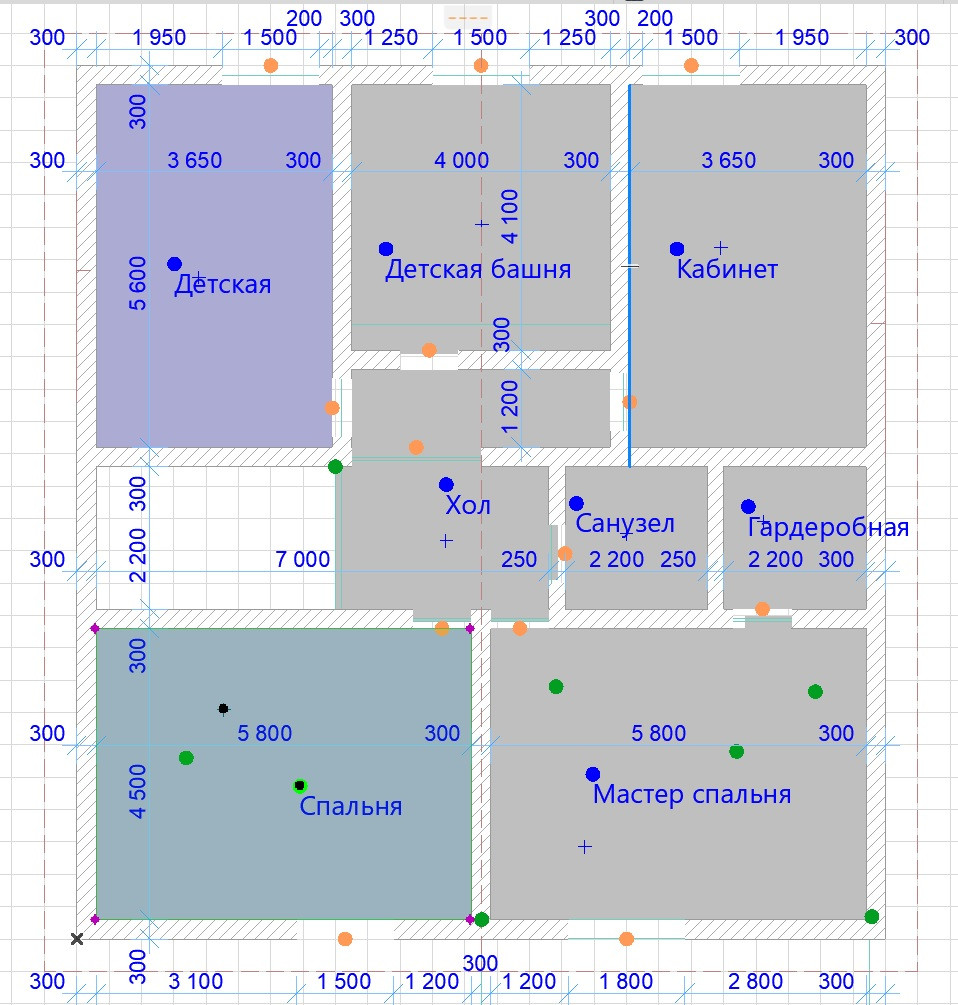 Планировка: 1-й этаж кухня 24м2, гостиная 42м2, спальня 26м2, санузел 5.5м2, прихожая 13м2, котельная 12м2. 2-й этаж: 2 спальни 26м2 с потолком 4 метра, детская двухэтажная 16.6 + 9.6м2 и потолком 5м, две комнаты по 20м2 детская/кабинет/гардеробная, санузел 4.5м2, гардеробная (или санузел) 4.5м2 при мастер спальне . Центральная детская комната с огромным арочным окном и кроватью под лестницей как у Гарри Поттера – мечта любого ребенка, башня с драконами. Вызывает «вау» у всех гостей, а дети сразу бегут на второй этаж комнаты.