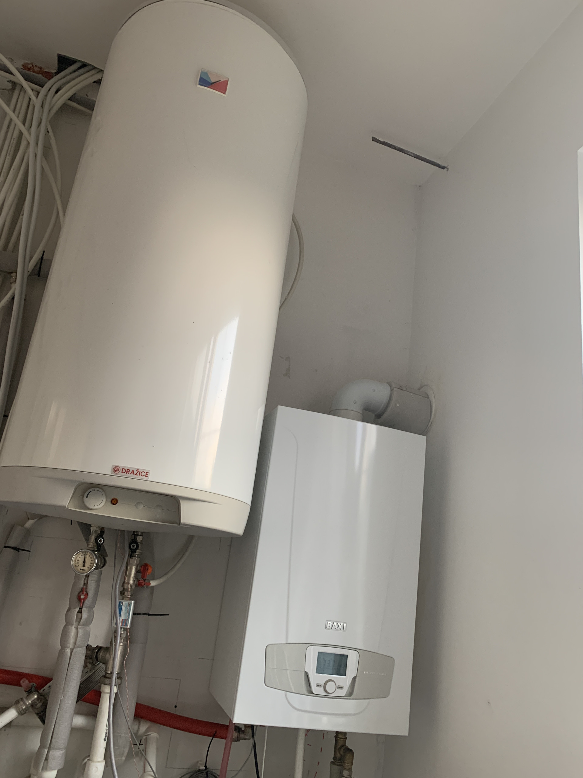 Электричество 39 кВт МОЭСК, 3-х фазное 380в сельский тариф день/ночь льготный. Интернет – оптоволокно, вода – скважина и насос с частотным управлением и постоянным давлением в кране. Отопление – газовый конденсационный котел Baxi Luna Platinum и электрокотел, запрограммированы на совместную работу и приоритет электричества по ночному тарифу. Газгольдер на 4800литров полностью заправлен, хватает на год-два. Магистральный газ по границе участка, деревня газифицирована. Вентиляция с рекуперацией. Все коммуникации заведены под землей.