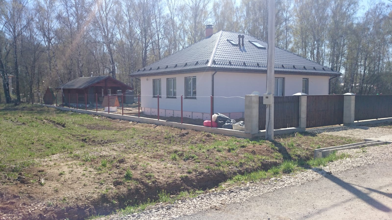 Ровный, прямоугольный участок, 11 соток. Газ, электричество, вода по границе участка.