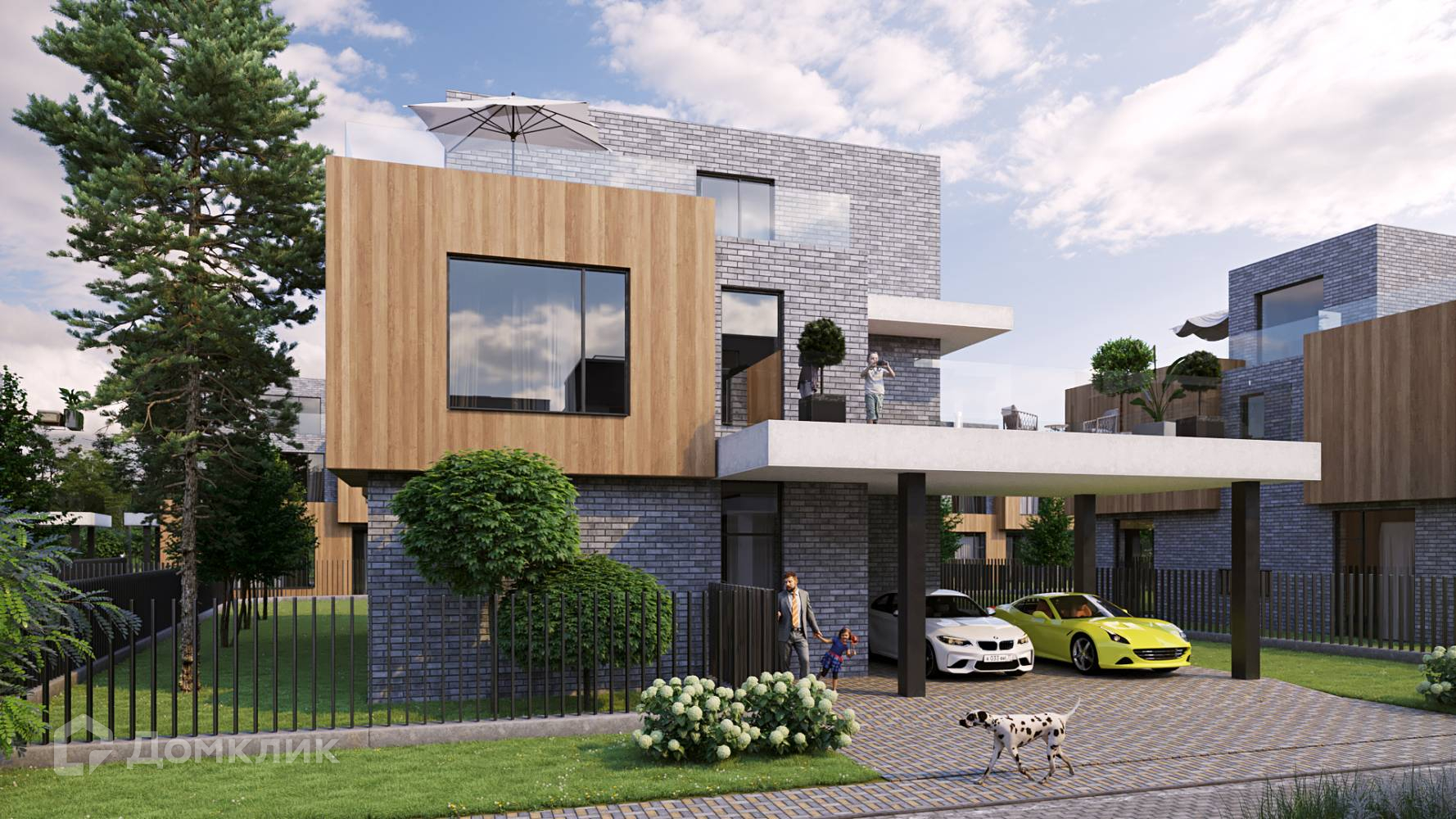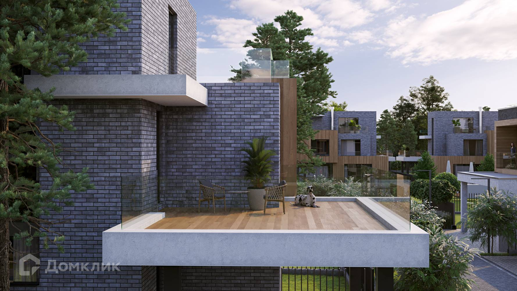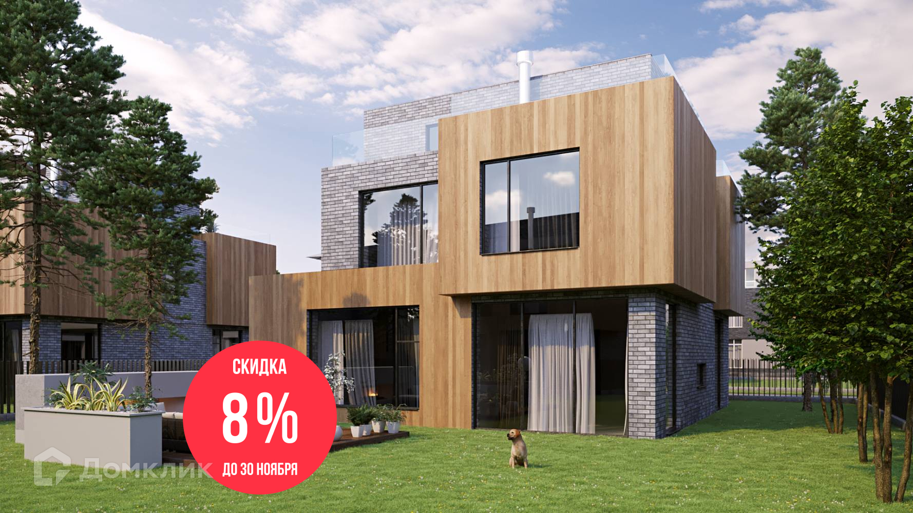 Единый архитектурный стиль коттеджей с плоскими эксплуатируемыми кровлями, большими панорамными окнами 3,7х3 метра, высокими потолками 3,5 метра, просторными балконами и террасами обеспечивает жителям максимум пространства, воздуха и естественного света в доме.