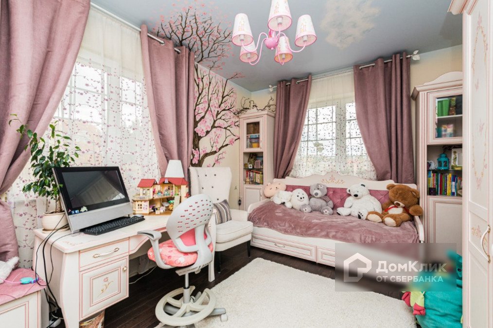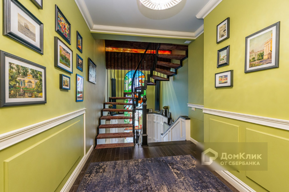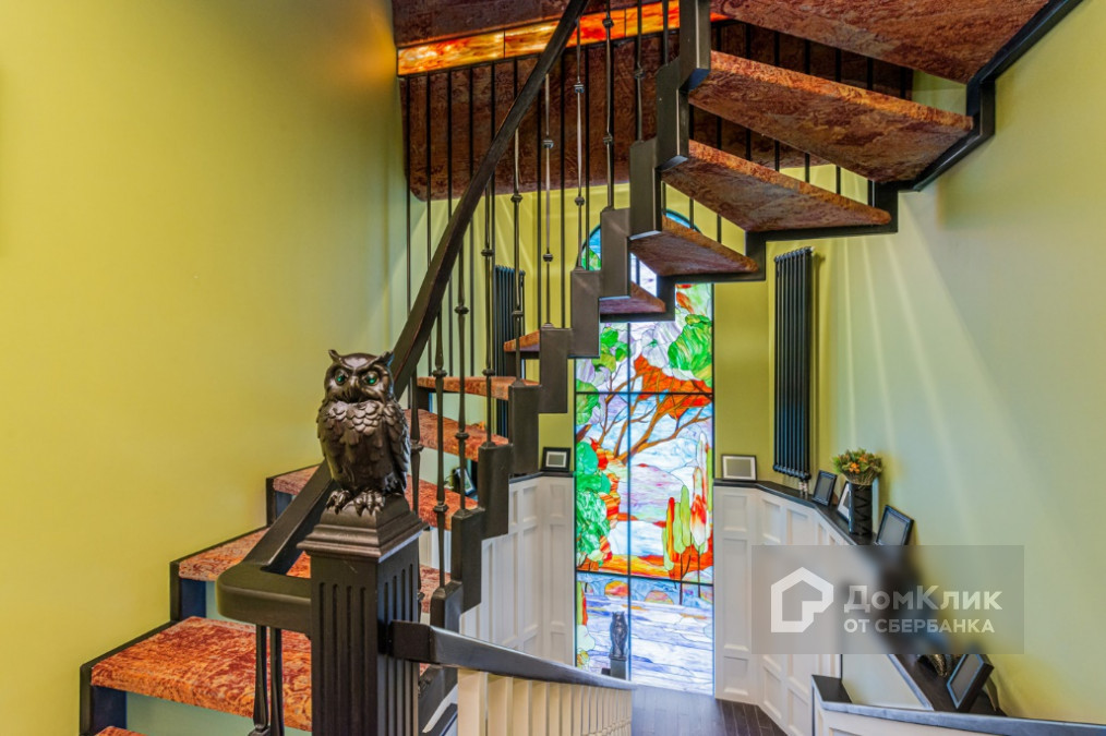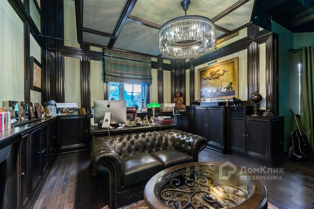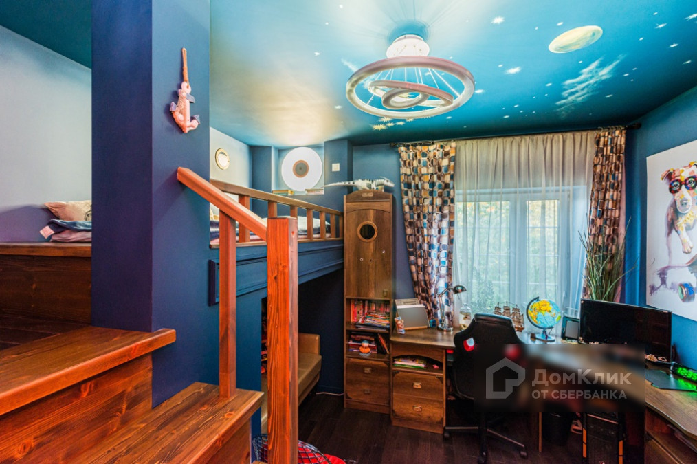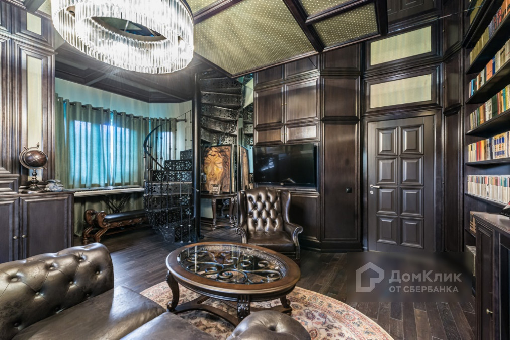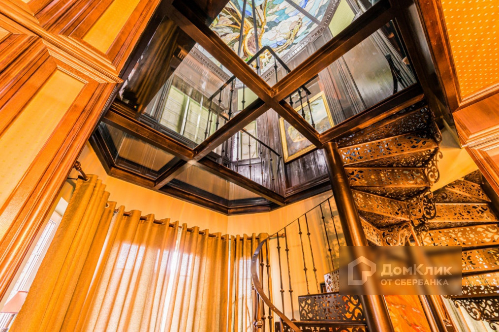 2 этаж: мастер-спальня с ванной и гардеробной комнатами; детский блок состоящий из гостиной, двух детских комнат и ванной комнаты; кабинет со вторым светом, винтовой лестницей, библиотекой и витражом.