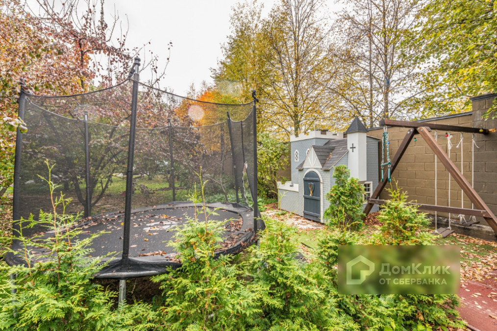 На участке выполнен ландшафтный дизайн, искусственный зарыбленый пруд с водопадом и циркуляцией воды, в центре пруда крытая беседка 30 м2, грот с зоной барбекю, детская площадка, прогулочные дорожки с лесными деревьями, старый плодовый сад с яблоками, грушами, черешней и т.д., хозяйственный блок. Площадь из брусчатки с часами и разворотным кругом для автомобилей, парковка на 6 автомобилей.