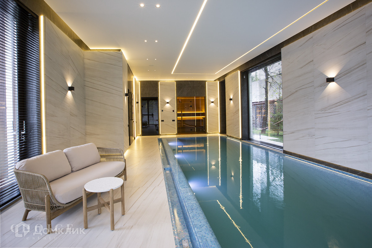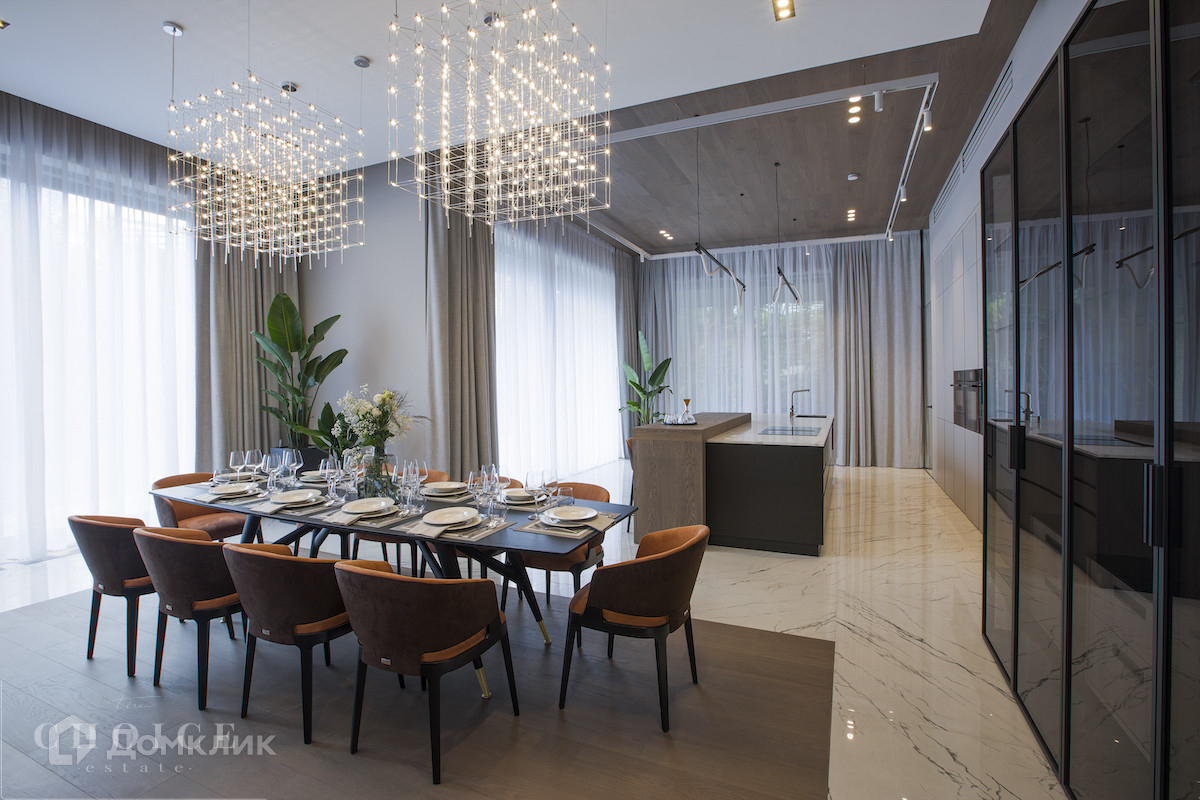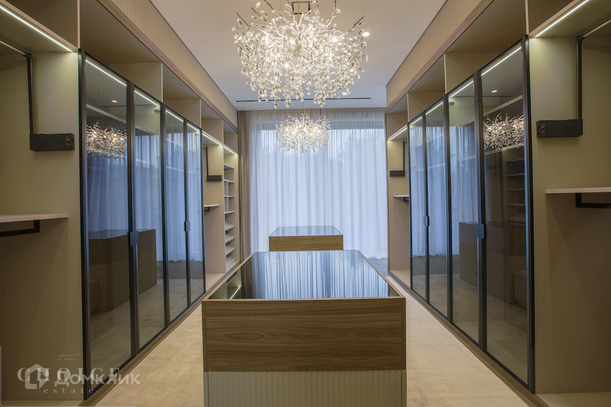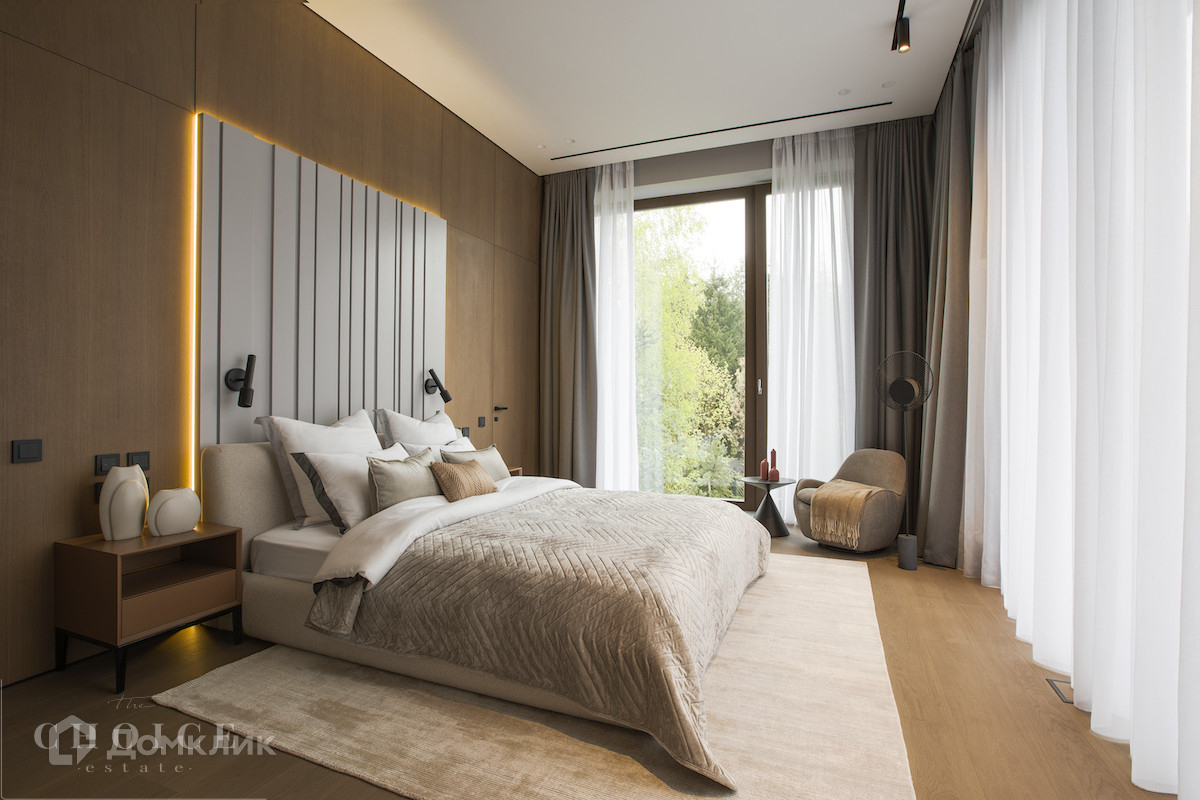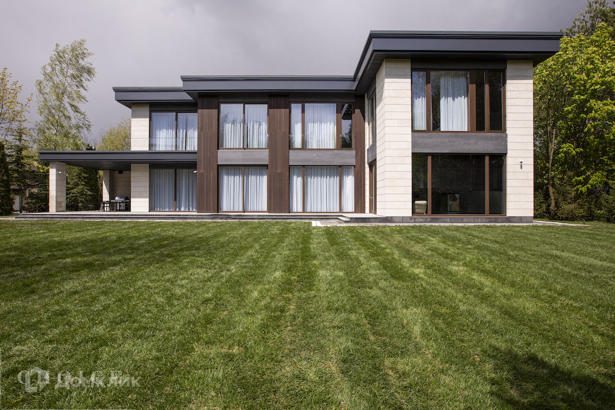 Загородная резиденция в современном стиле площадью 905 м² построена на лесном участке 21,6 сотки. В коттедже выполнена отделка «под ключ» с мебелью. Планировкой предусмотрены 6 спален с ванными комнатами, просторная гостиная, кухня-столовая, SPA-зона с бассейном и сауной, гараж на 2 машины. На участке выполнен ландшафтный дизайн, перед домом организована парковка на 3 машины, вымощены дорожки, установлено уличное освещение.