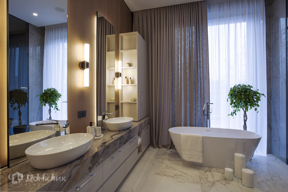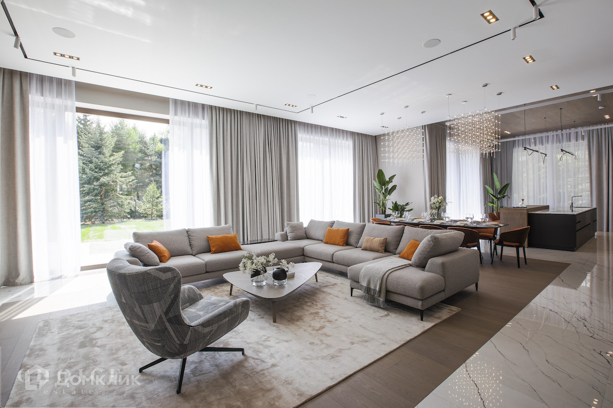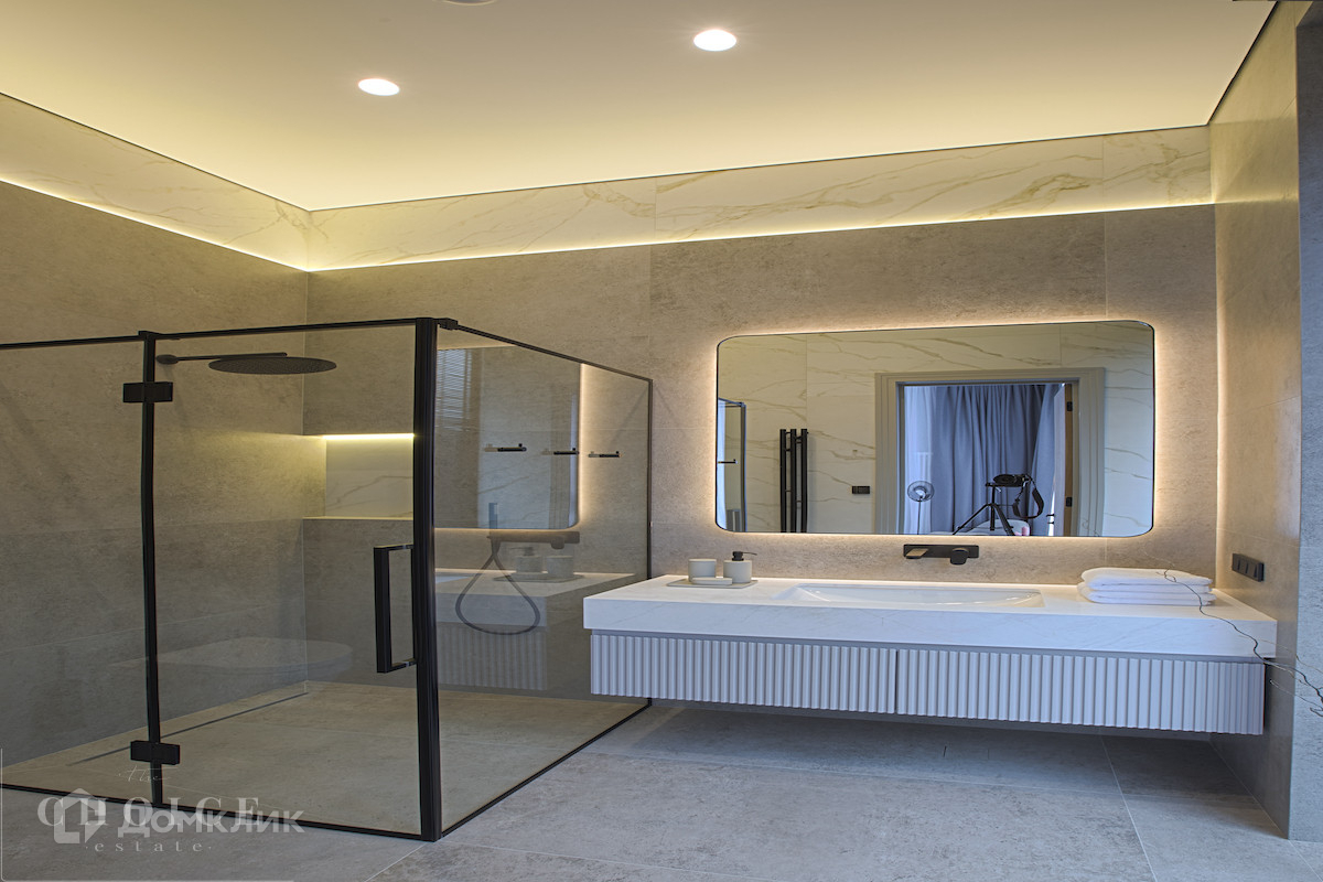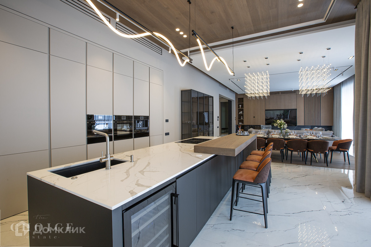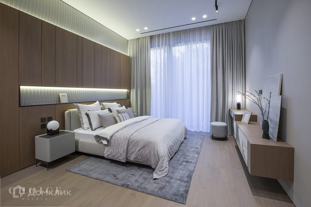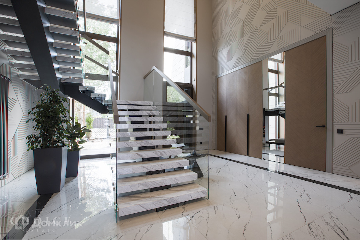Загородная резиденция в современном стиле площадью 905 м² построена на лесном участке 21,6 сотки. В коттедже выполнена отделка «под ключ» с мебелью. Планировкой предусмотрены 6 спален с ванными комнатами, просторная гостиная, кухня-столовая, SPA-зона с бассейном и сауной, гараж на 2 машины. На участке выполнен ландшафтный дизайн, перед домом организована парковка на 3 машины, вымощены дорожки, установлено уличное освещение.