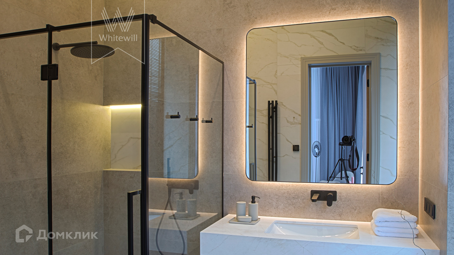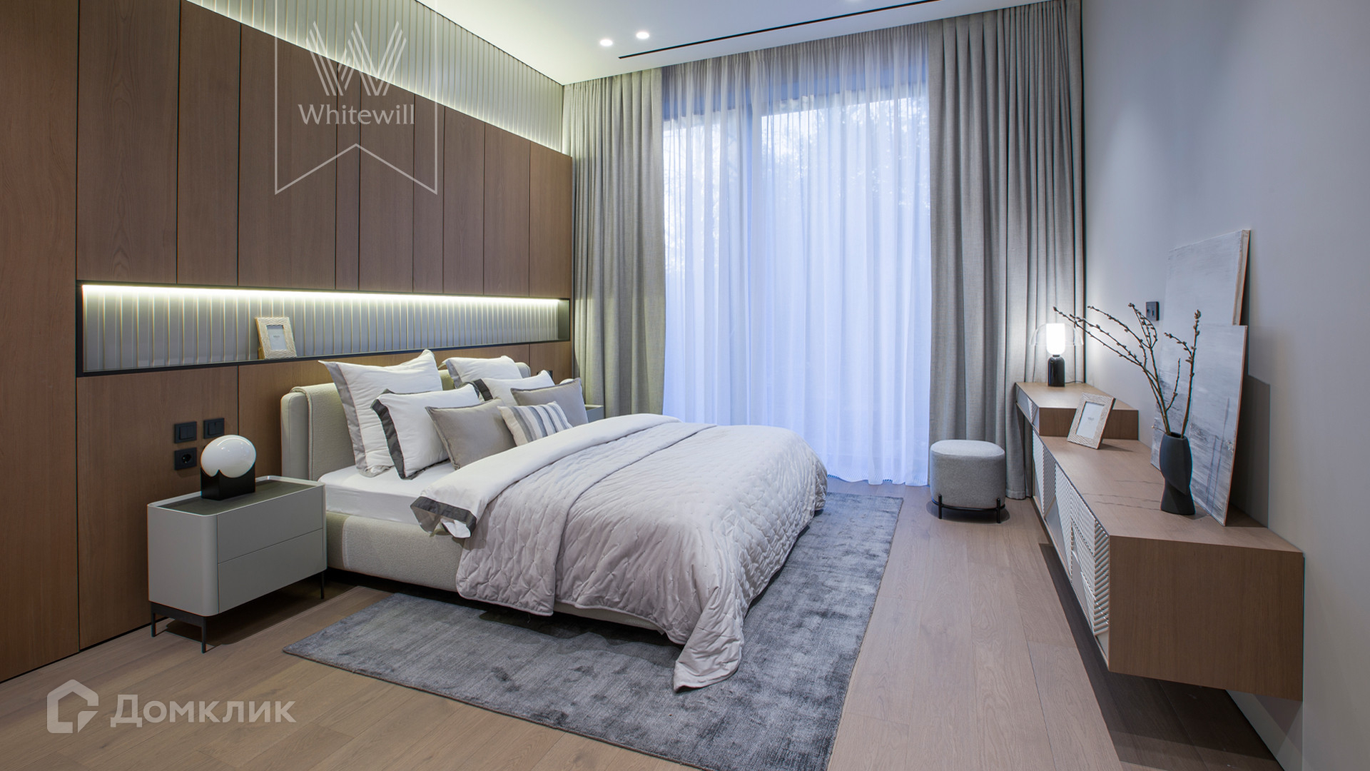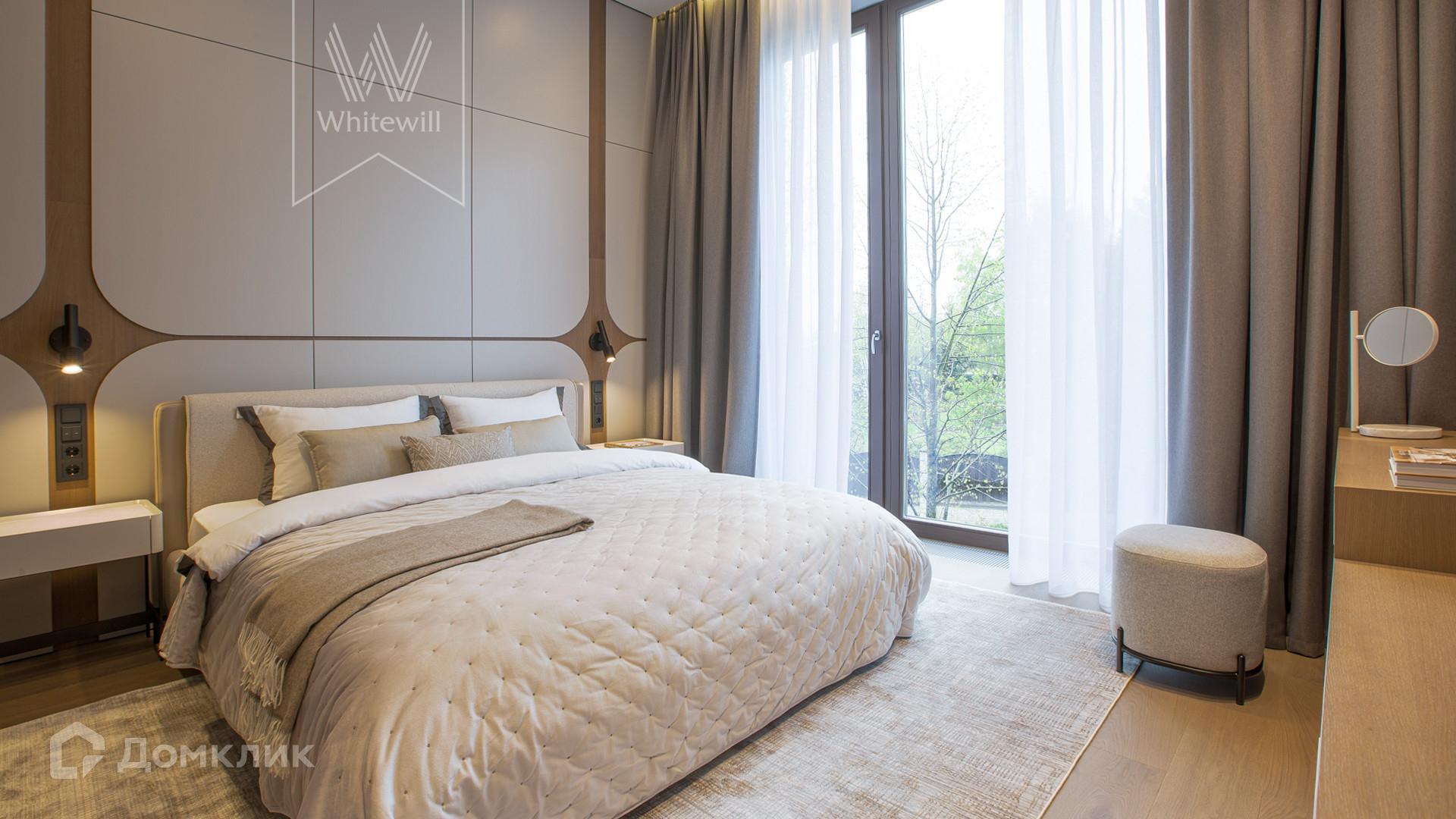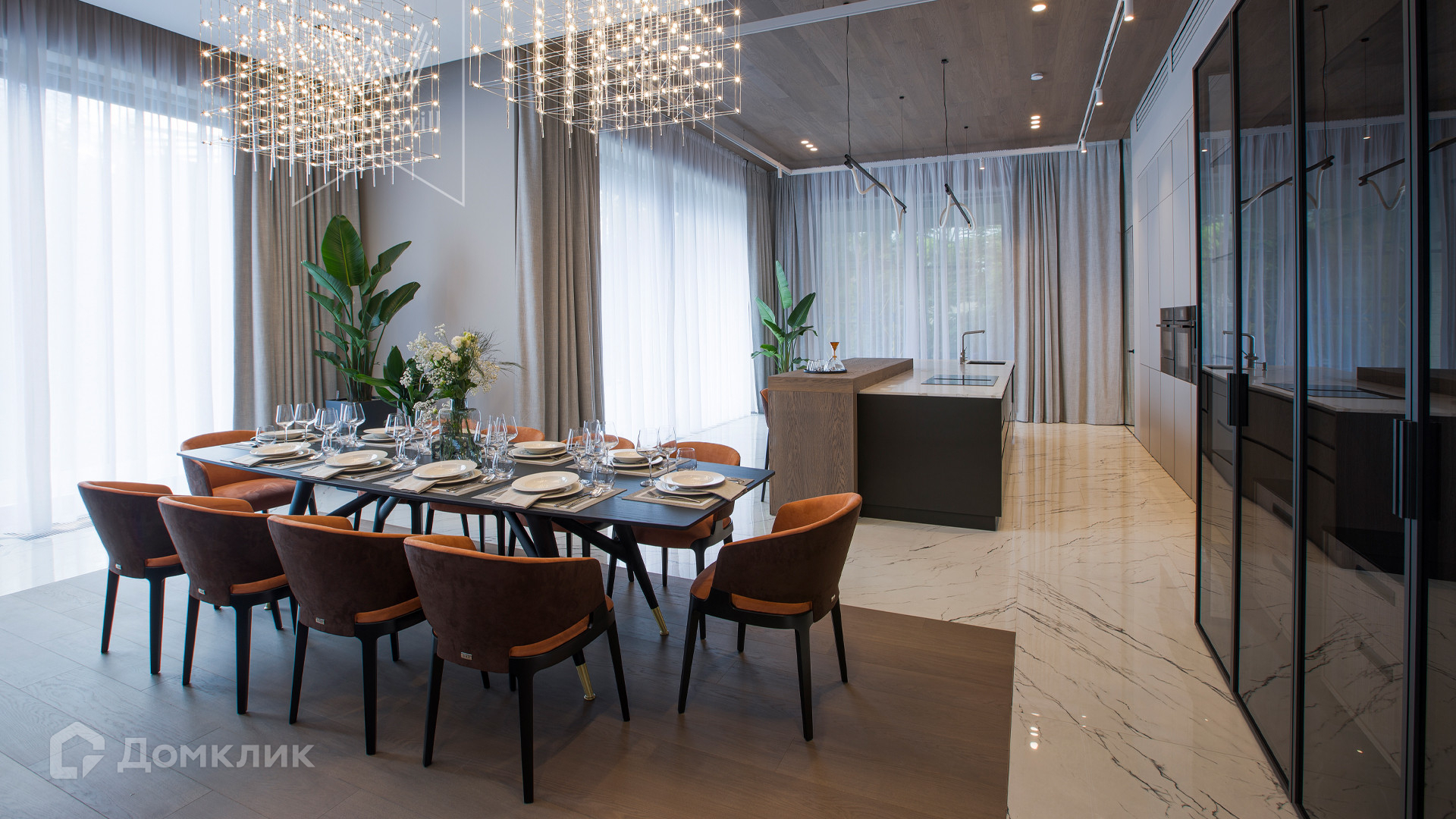 ID 11 686. Никольская слобода. Загородная резиденция площадью 910 м² построена на лесном участке 21,5 сотки. Светлый фасад с большими окнами выполнен в современном стиле, облицован гранитом, известняком, керамогранитом и планкеном из ясеня. В отделке интерьера использованы инженерная доска Coswick, мрамор, плитка, сантехника Timo, Boheme, светильники Arlight, Gauss, FIUME. Дом укомплектован гардеробными и встроенными шкафами, кухонным гарнитуром с бытовой техникой Kuppersbusch, Miele, Gaggenau. В планировке предусмотрены 5 спален с ванными комнатами, просторная гостиная с камином, кухня-столовая, SPA-зона с бассейном и сауной, гараж на 2 машины. На участке выполнен ландшафтный дизайн, перед домом организована парковка на 3 машины, вымощены дорожки, установлено освещение.