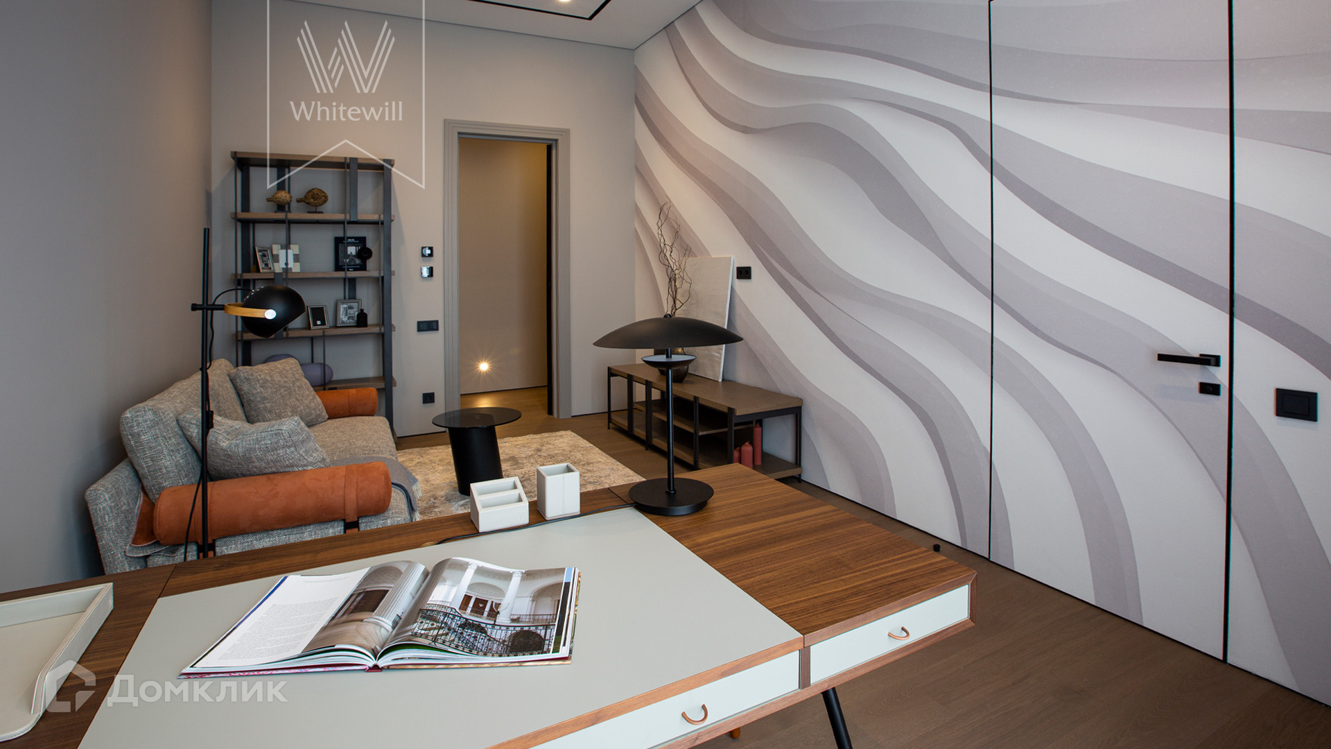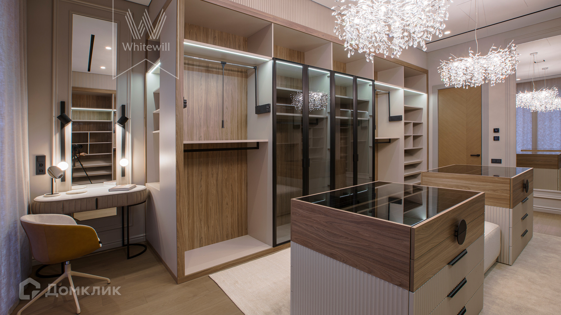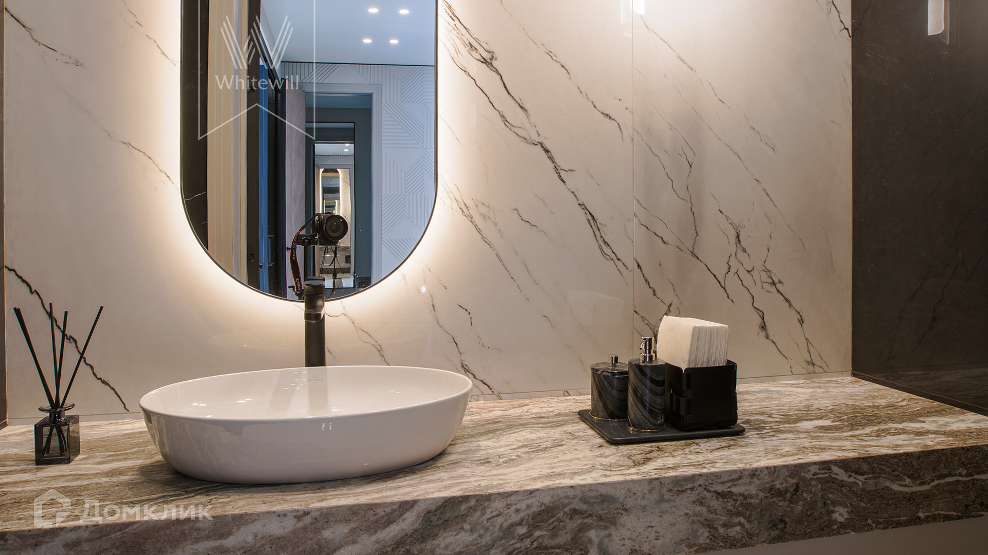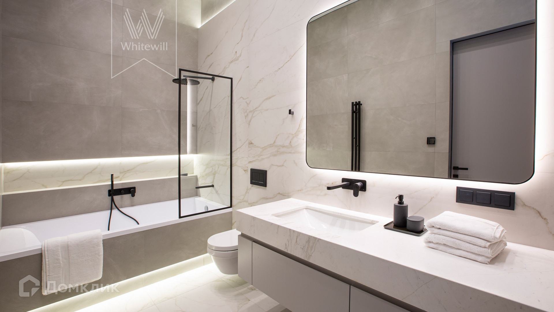 ID 11 686. Никольская слобода. Загородная резиденция площадью 910 м² построена на лесном участке 21,5 сотки. Светлый фасад с большими окнами выполнен в современном стиле, облицован гранитом, известняком, керамогранитом и планкеном из ясеня. В отделке интерьера использованы инженерная доска Coswick, мрамор, плитка, сантехника Timo, Boheme, светильники Arlight, Gauss, FIUME. Дом укомплектован гардеробными и встроенными шкафами, кухонным гарнитуром с бытовой техникой Kuppersbusch, Miele, Gaggenau. В планировке предусмотрены 5 спален с ванными комнатами, просторная гостиная с камином, кухня-столовая, SPA-зона с бассейном и сауной, гараж на 2 машины. На участке выполнен ландшафтный дизайн, перед домом организована парковка на 3 машины, вымощены дорожки, установлено освещение.