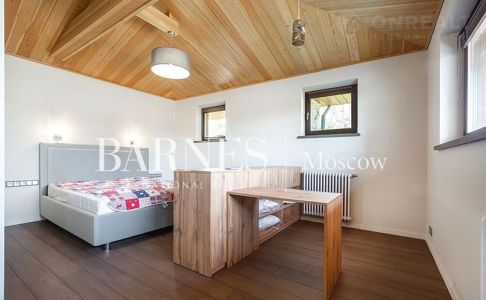 2 этаж: три спальни + кабинет ( можно переделать в спальню) с индивидуальными гардеробными и санузлами, четвертая спальня с отдельной лестницей и своей кухней ( может использоваться как блок для персонала, гостевой блок, и т.д)